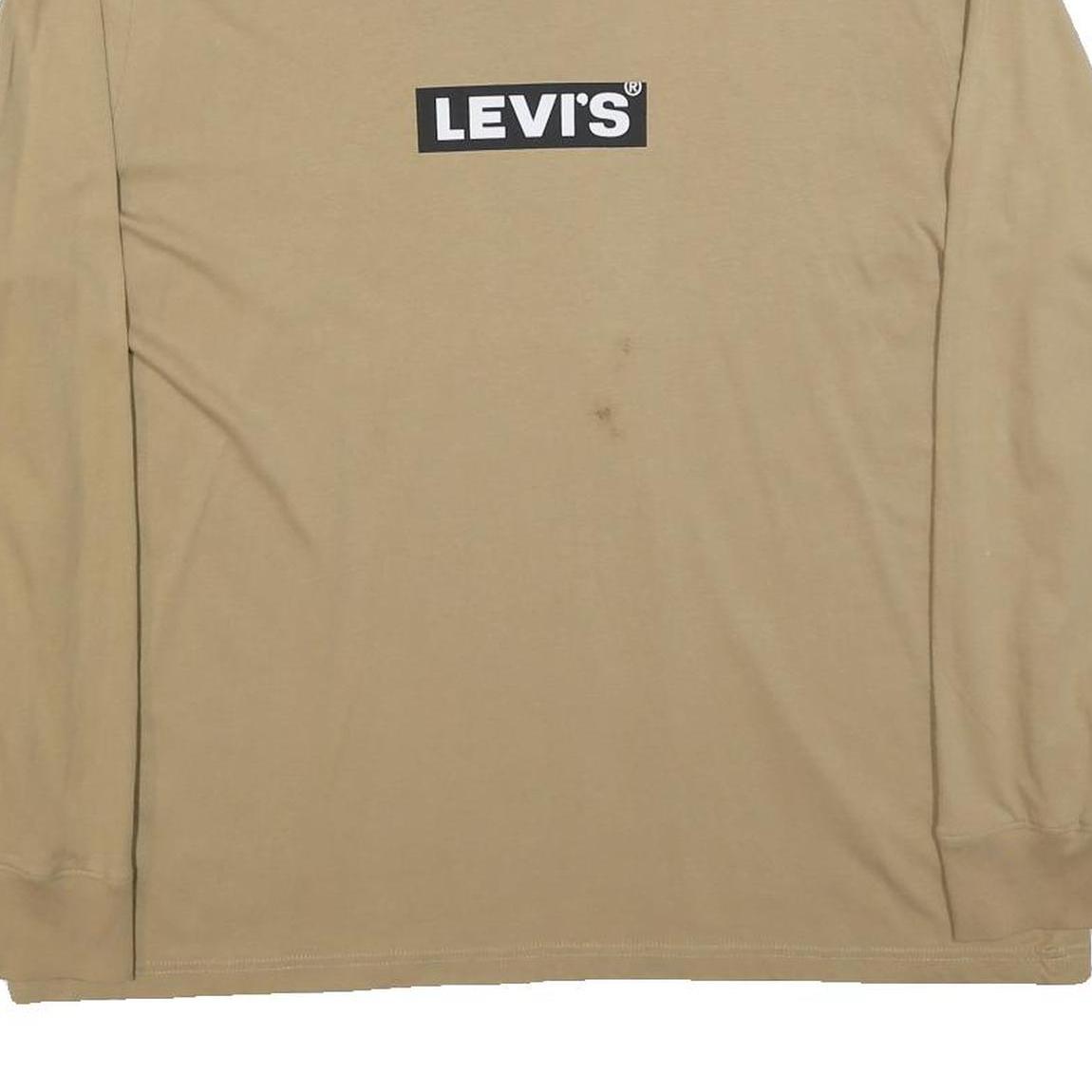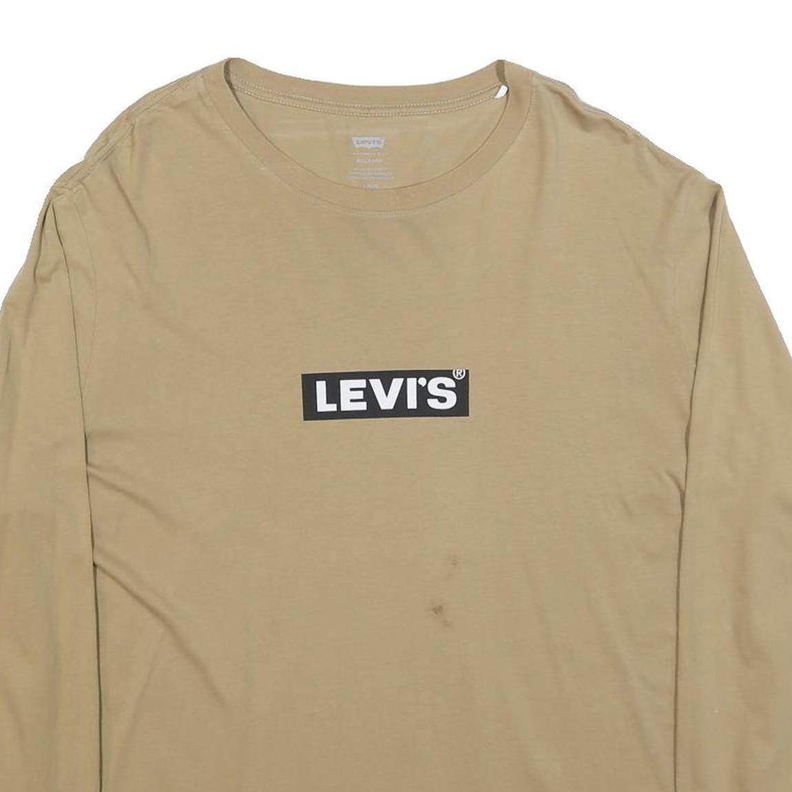 LEVI'S Mens Beige Long Sleeve Crew Neck Cotton Blend T-Shirt L Logo Print