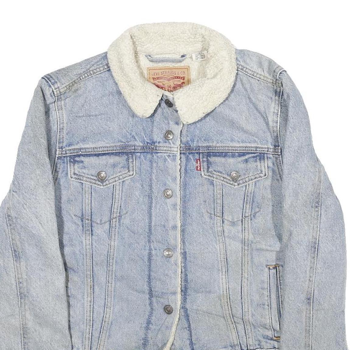 Made from durable cotton, the jacket offers a sturdy yet comfortable feel typical of Levi's denim garments. It has a regular fit and length that sits at the waist, making it a versatile piece for layering in cooler seasons. The sherpa lining on the collar adds a cosy texture and warmth without bulk.
