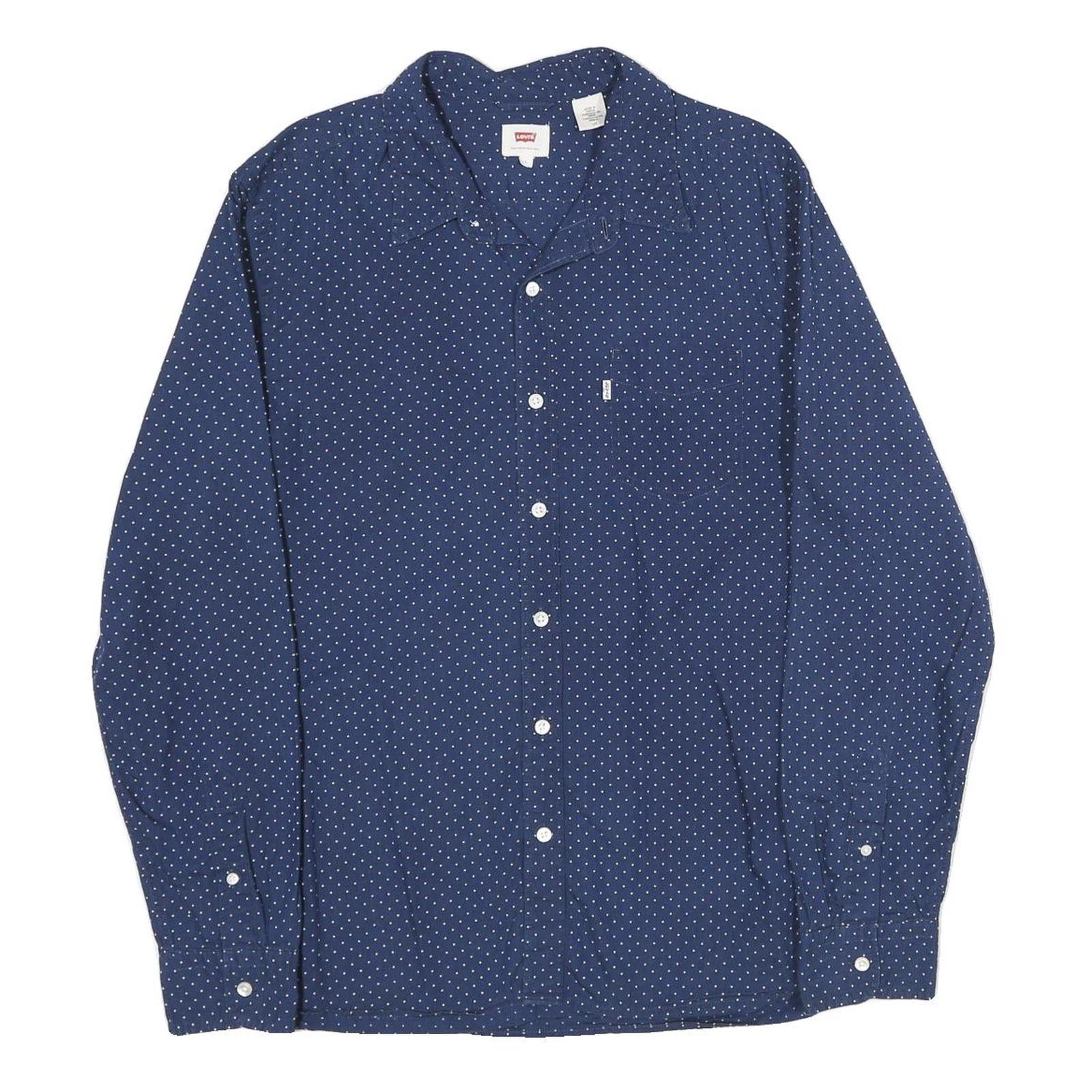 LEVI'S Mens Blue & White Polka Dot Cotton Shirt L Casual Button Down