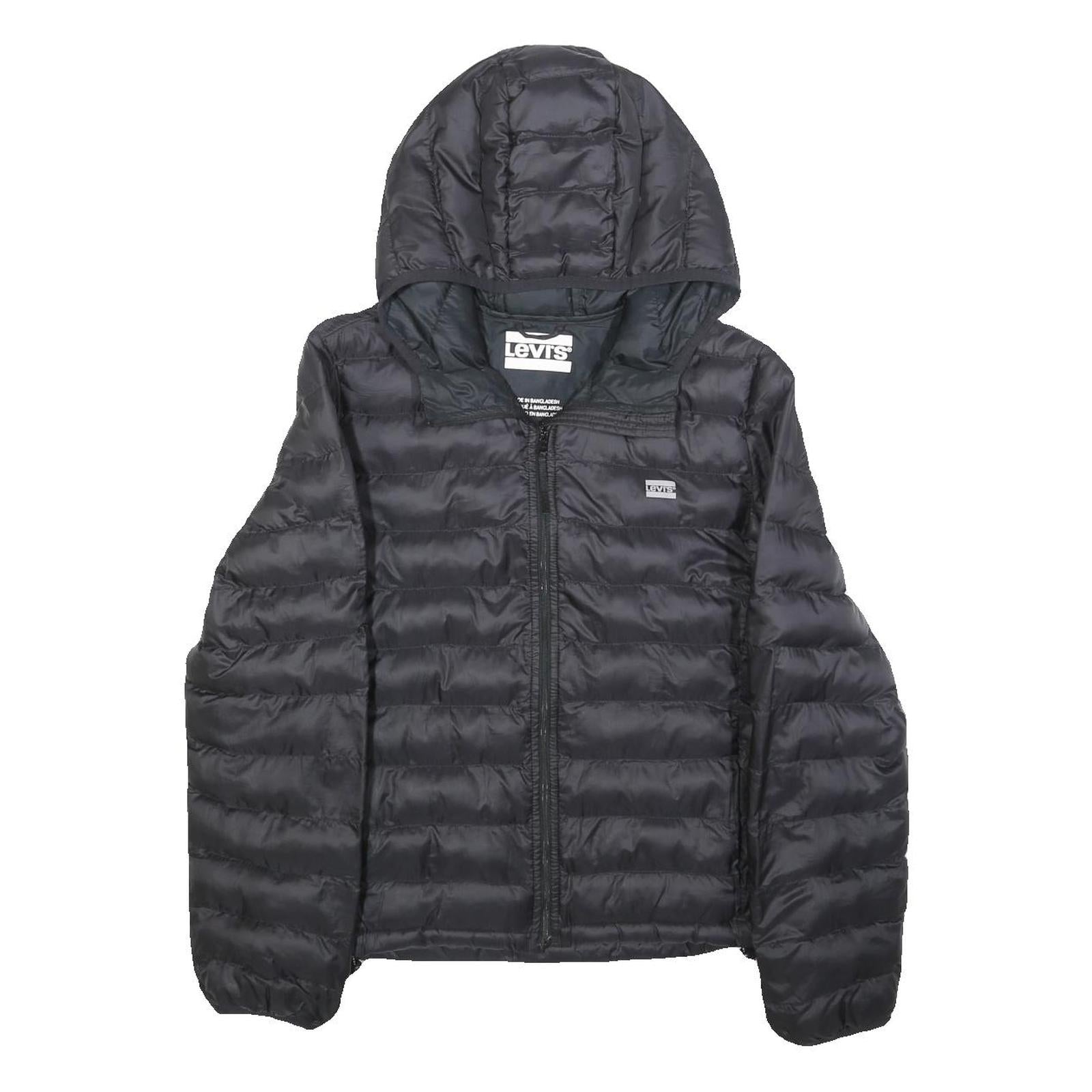LEVI'S Womens Black Puffer Jacket S Polyester Hooded Zip Plain Lightweight
