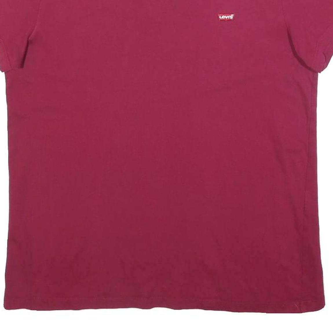 This LEVI'S womens T-shirt is a solid deep red colour with a small red and white LEVI'S logo tag on the front left chest. It features a classic crew neck and short sleeves for a timeless casual look. The shirt is free from any additional prints or patterns, emphasising a clean and versatile style.