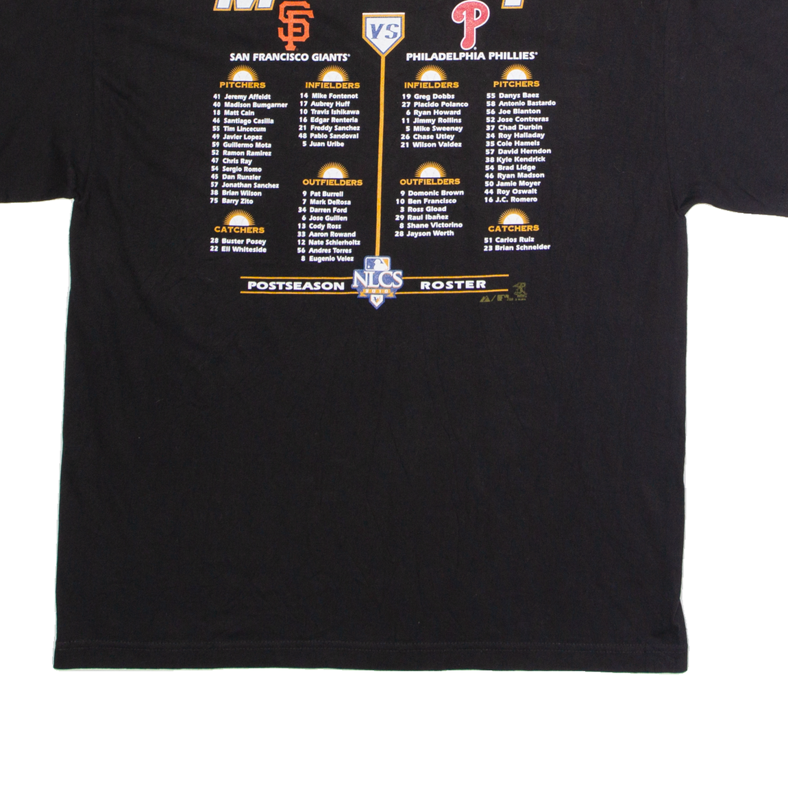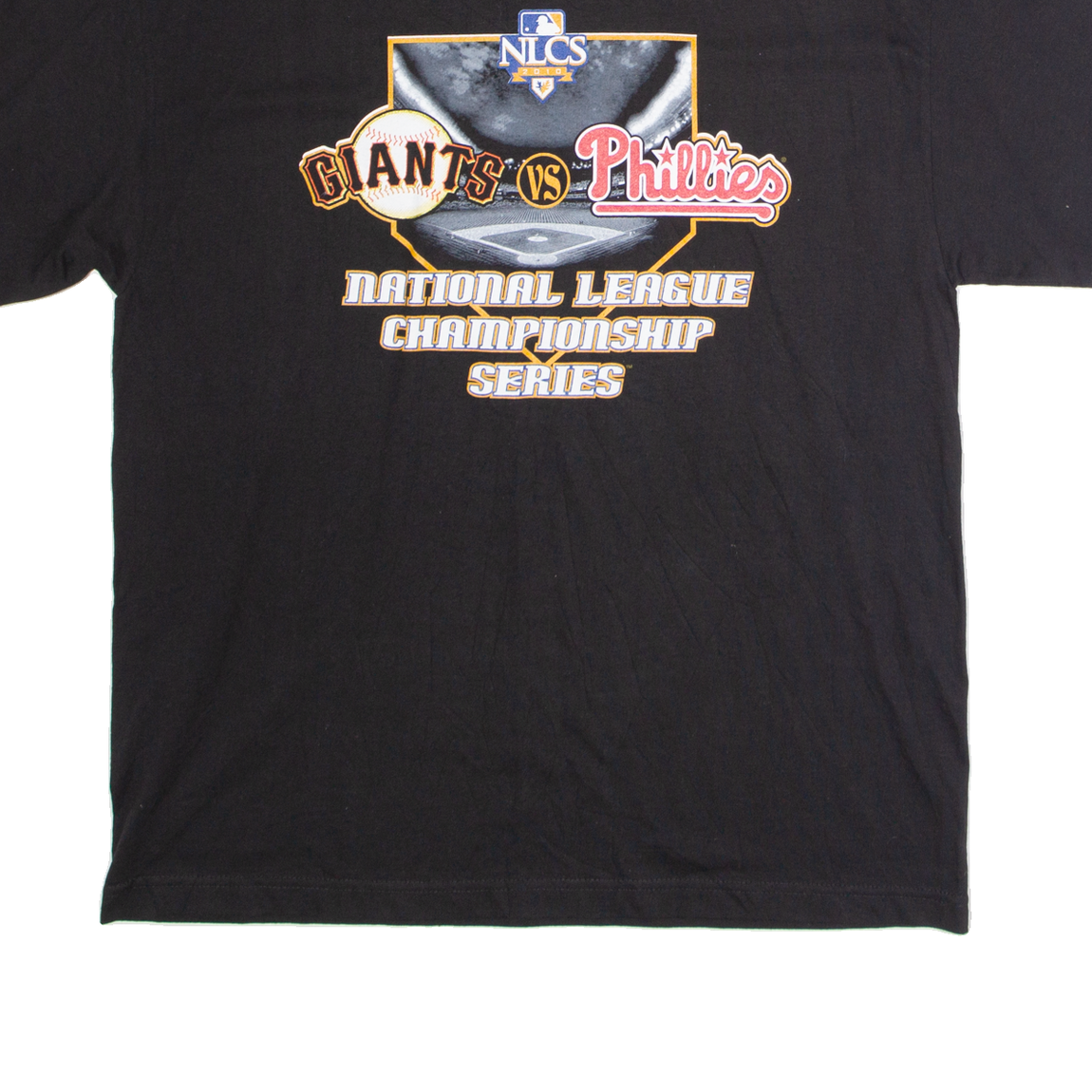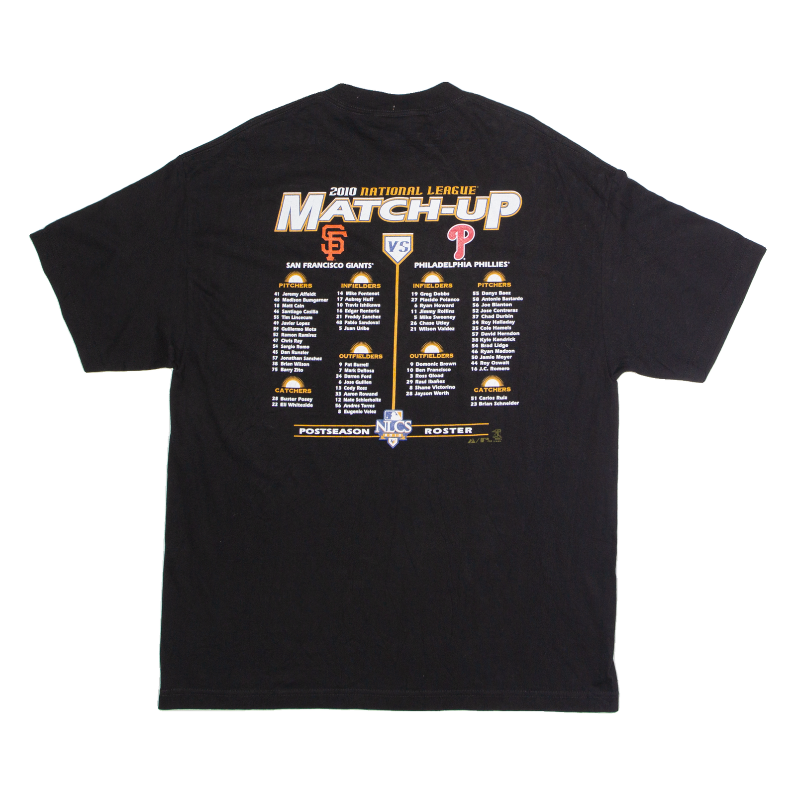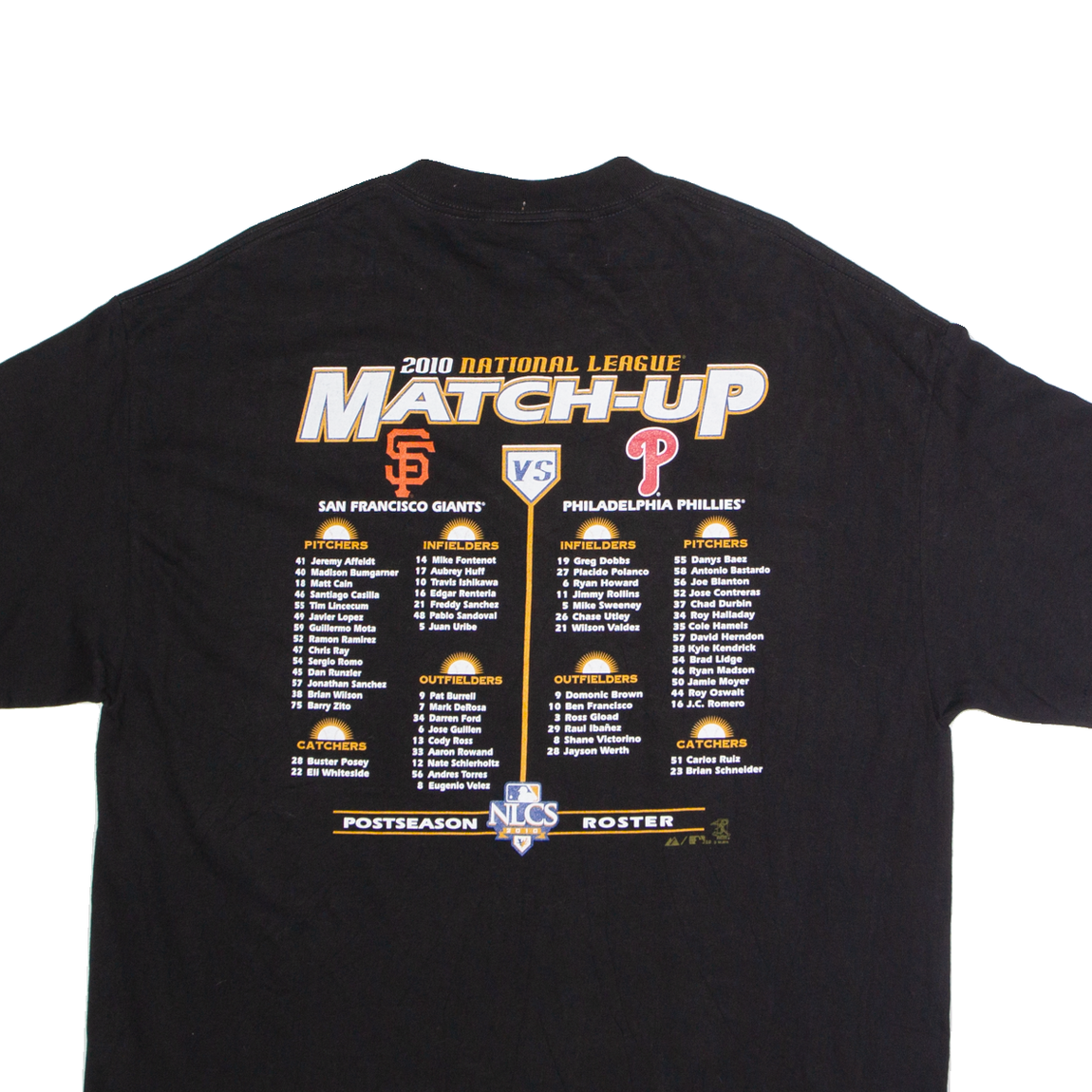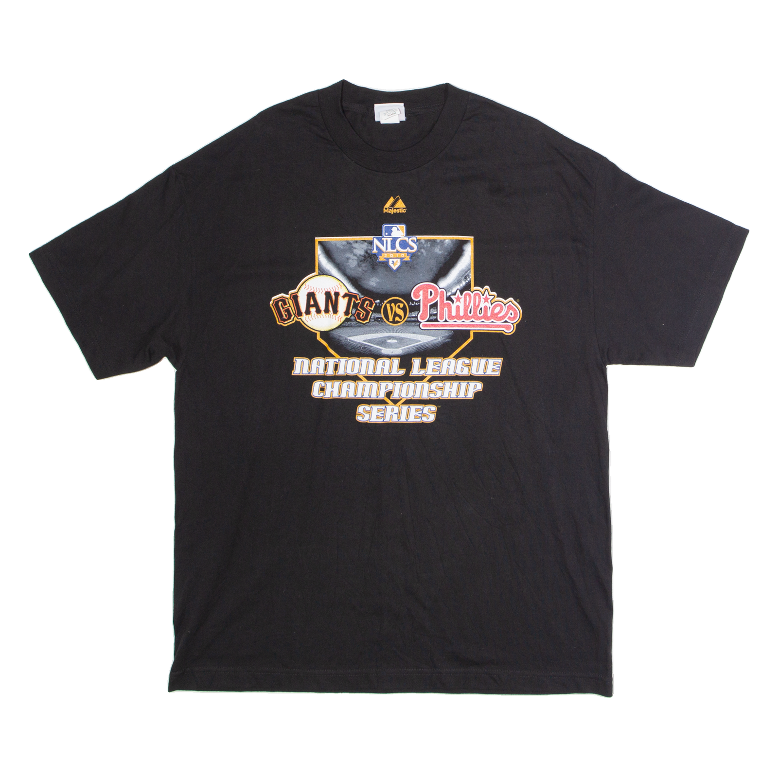 MAJESTIC NLCS 2010 San Francisco Giants Vs Philadelphia Phillies Mens T-Shirt Black USA XL