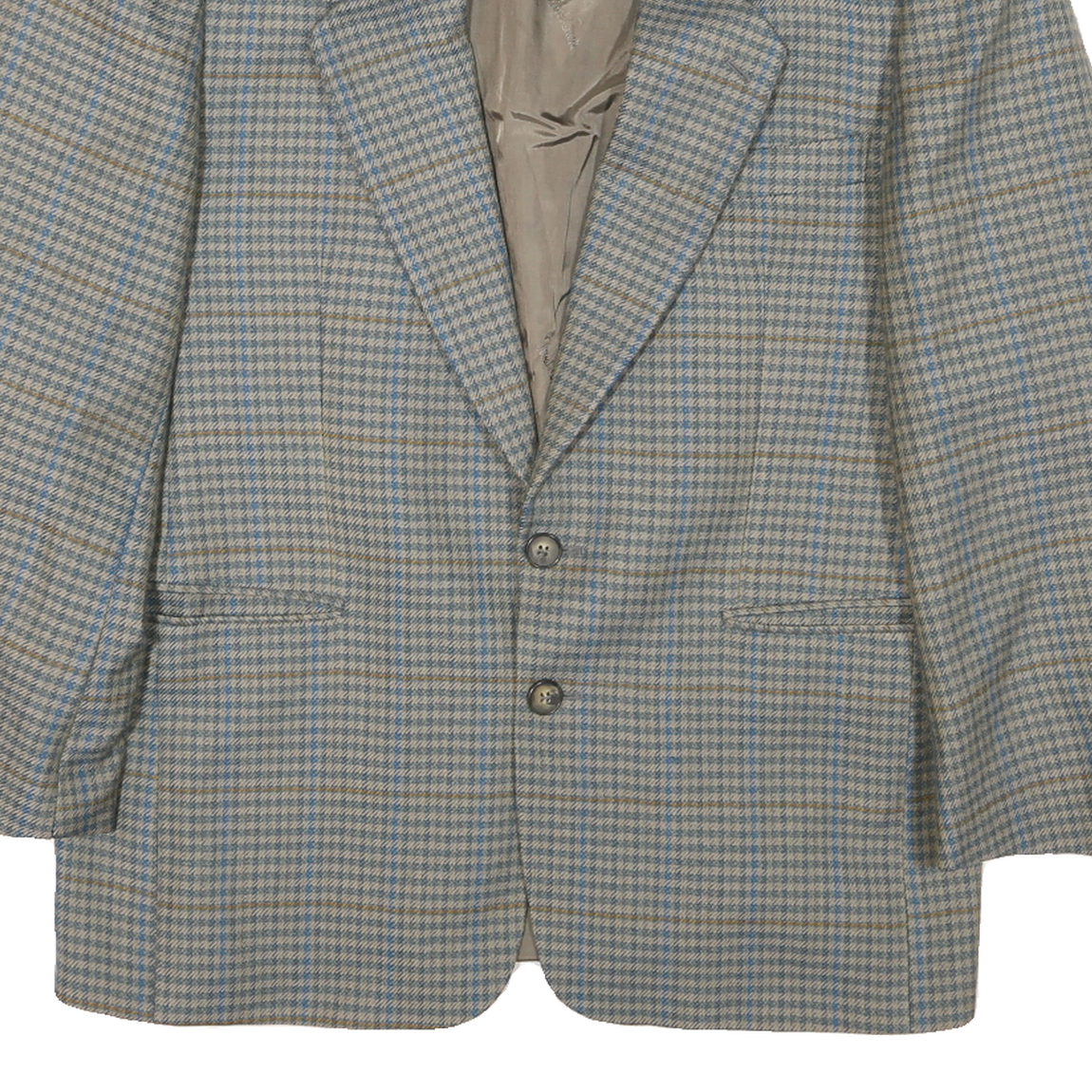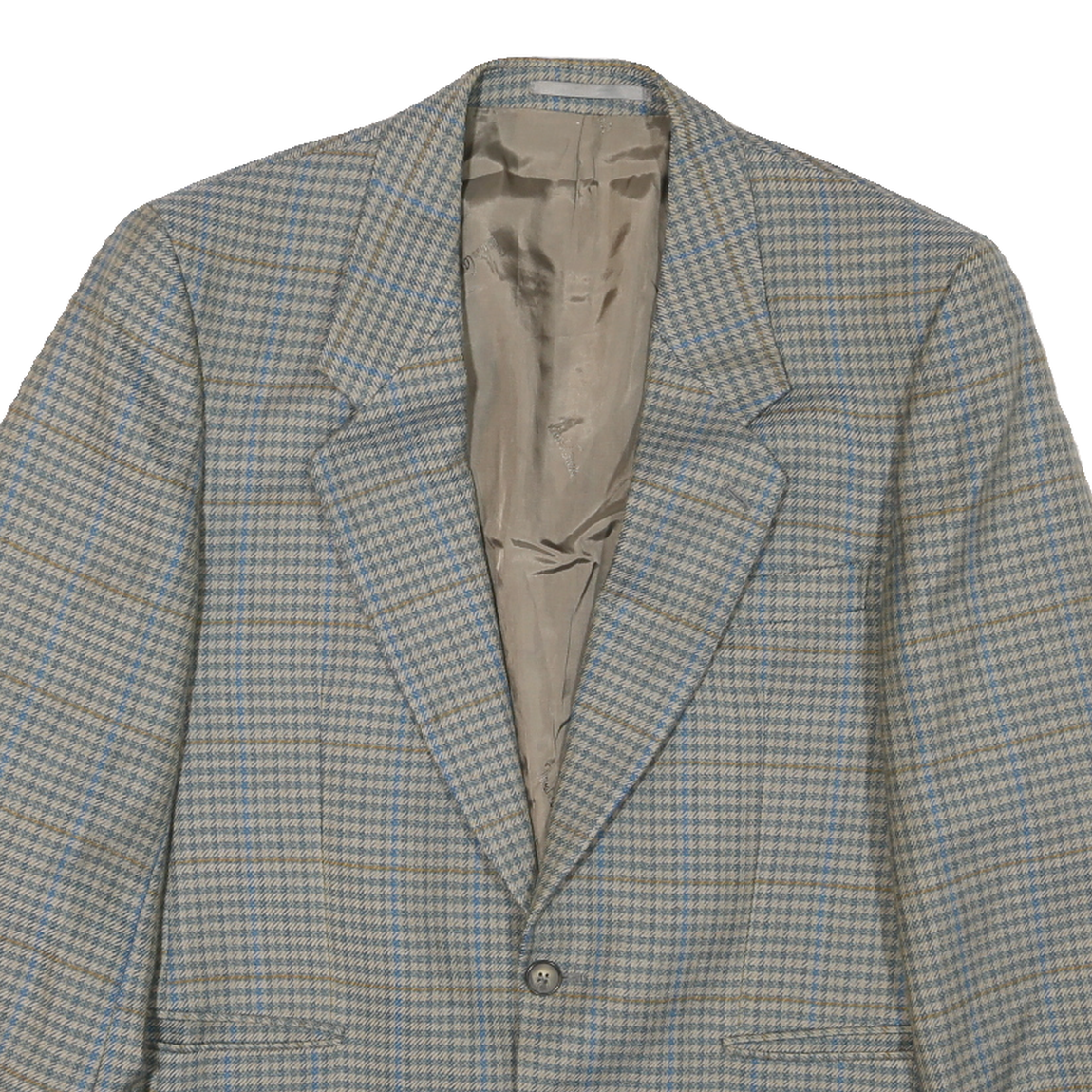 Mens Beige & Blue Check Classic Button Jacket L Polyester Blend Tailored
