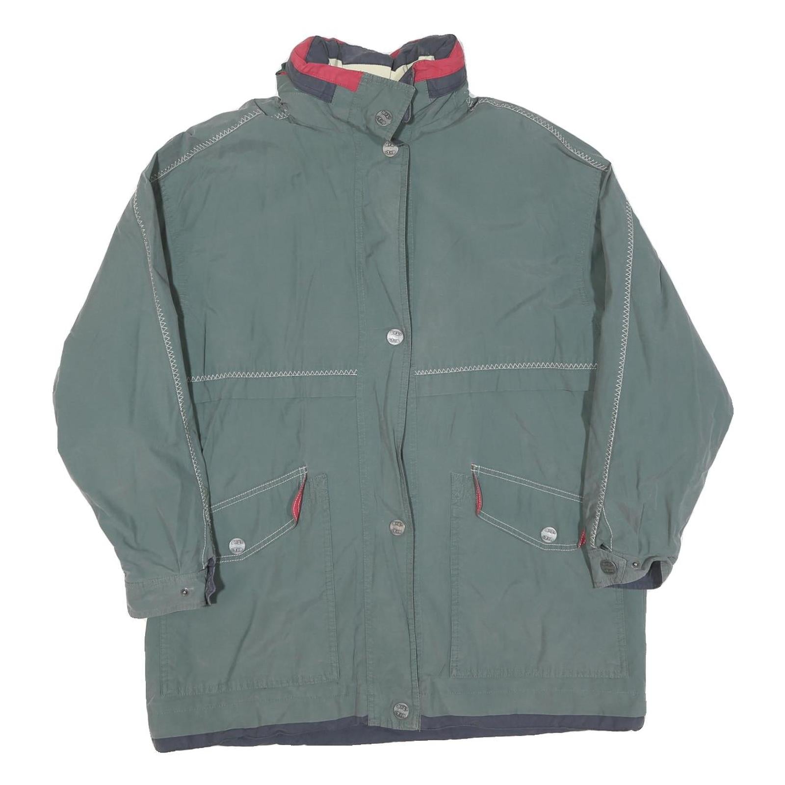 Mens Green Polyester Blend Jacket L Zip Casual Outerwear