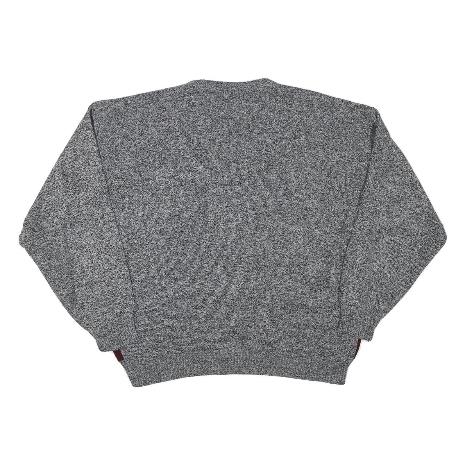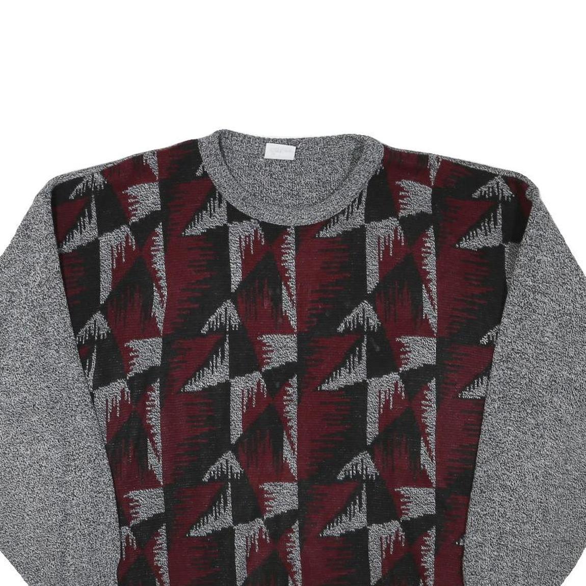 Mens Grey & Maroon Patterned Jumper Crew Neck Basic Knit L Acrylic Blend Casual