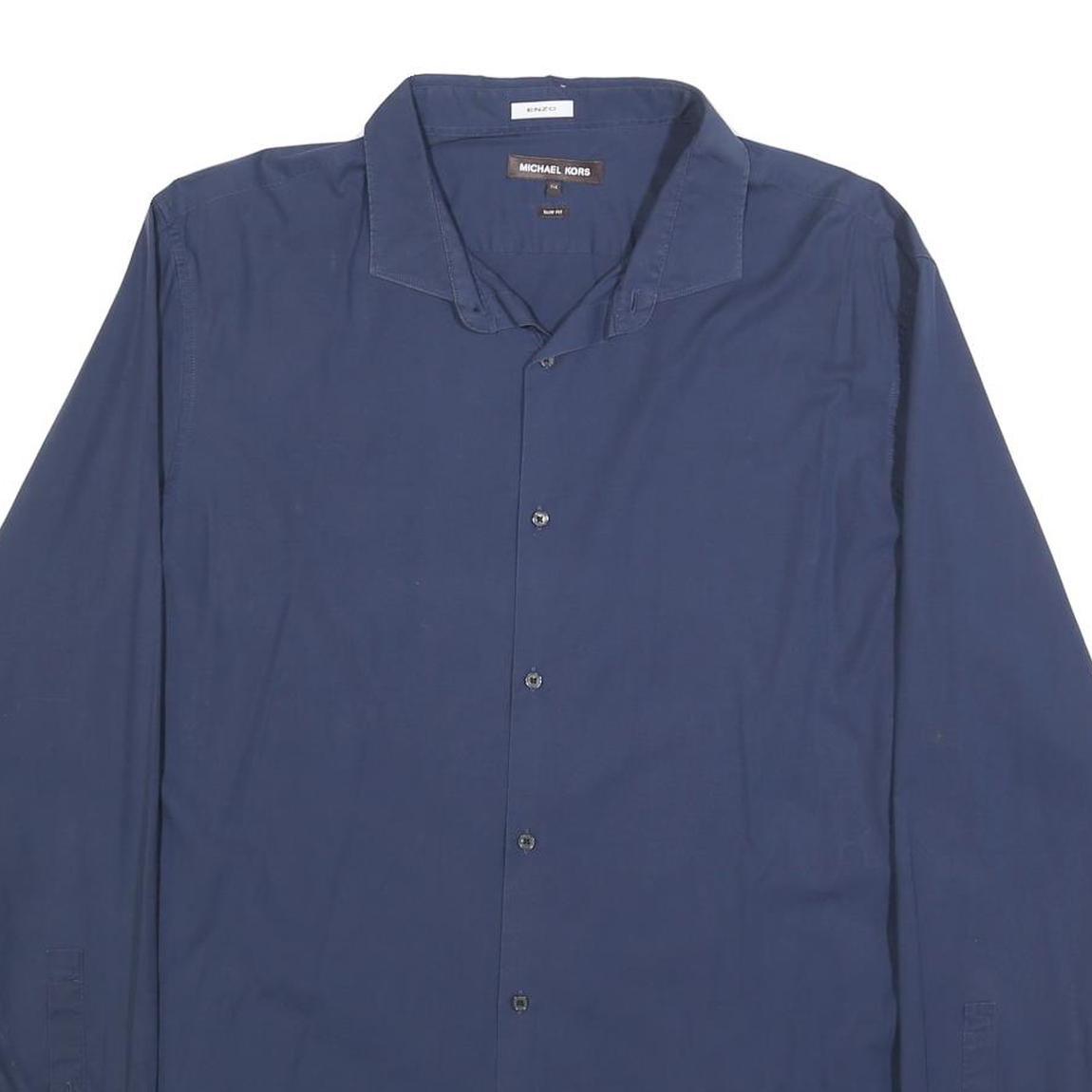 MICHAEL KORS Mens Blue 2XL Long Sleeve Cotton Blend Classic Shirt Smart Casual