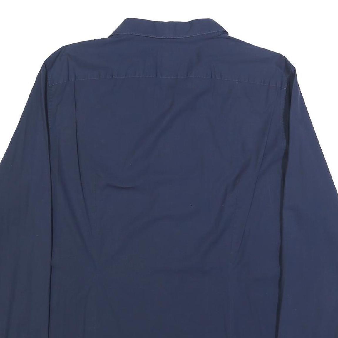 This Michael Kors mens shirt is crafted in a deep blue cotton blend fabric, offering a smooth and comfortable feel. The shirt features a classic button-down front with a pointed collar and long sleeves with button cuffs, perfect for a polished everyday or office look.