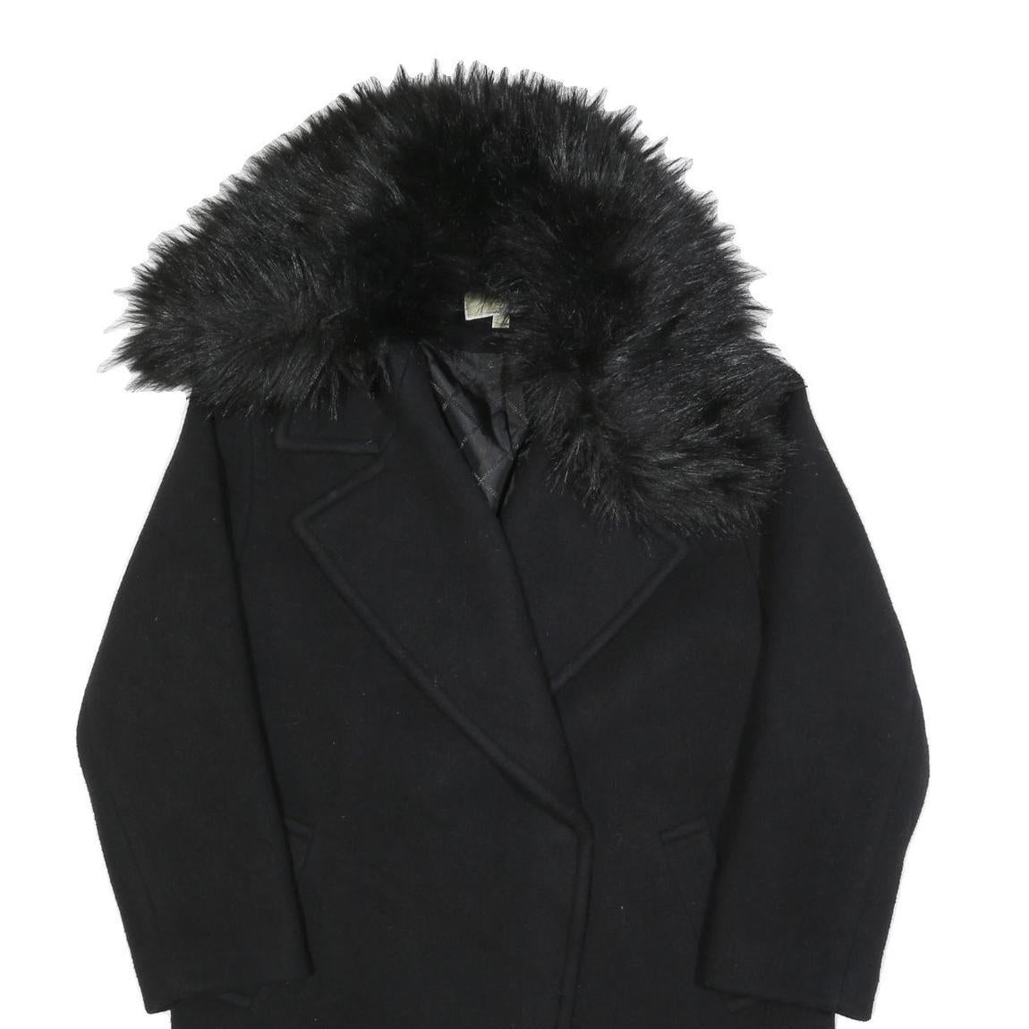MICHAEL KORS Womens Black Wool Blend Button Jacket M Faux Fur Collar Classic
