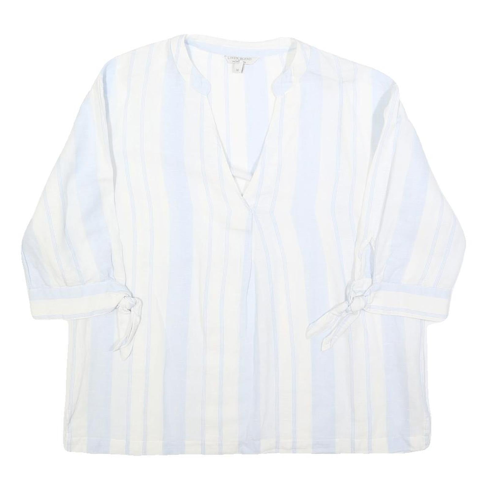 MONSOON Womens White & Blue Printed Top 3/4 Sleeve V-Neck M Linen Blend