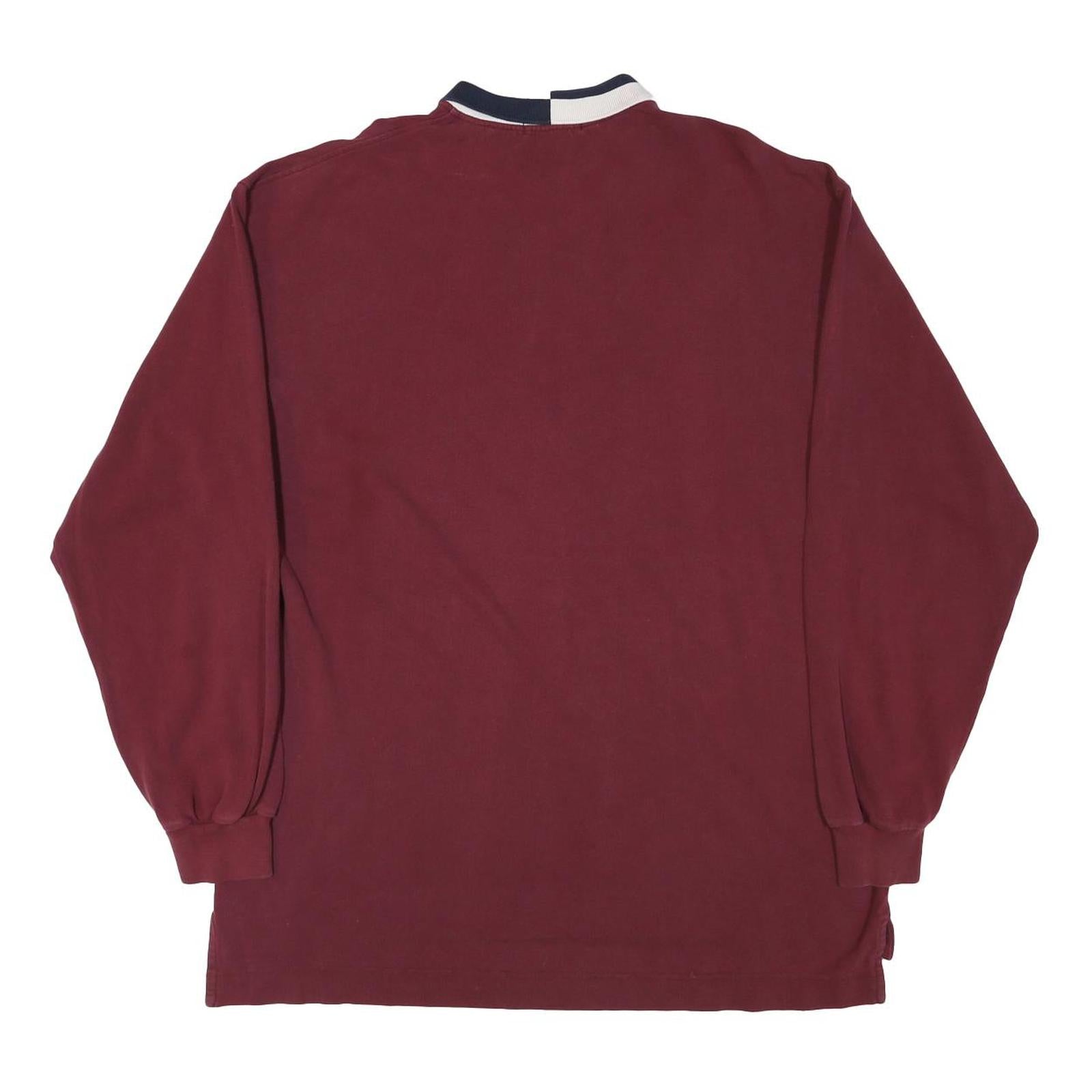 NAUTICA Mens Maroon Long Sleeve Plain XL Cotton Blend Polo Shirt Classic Logo