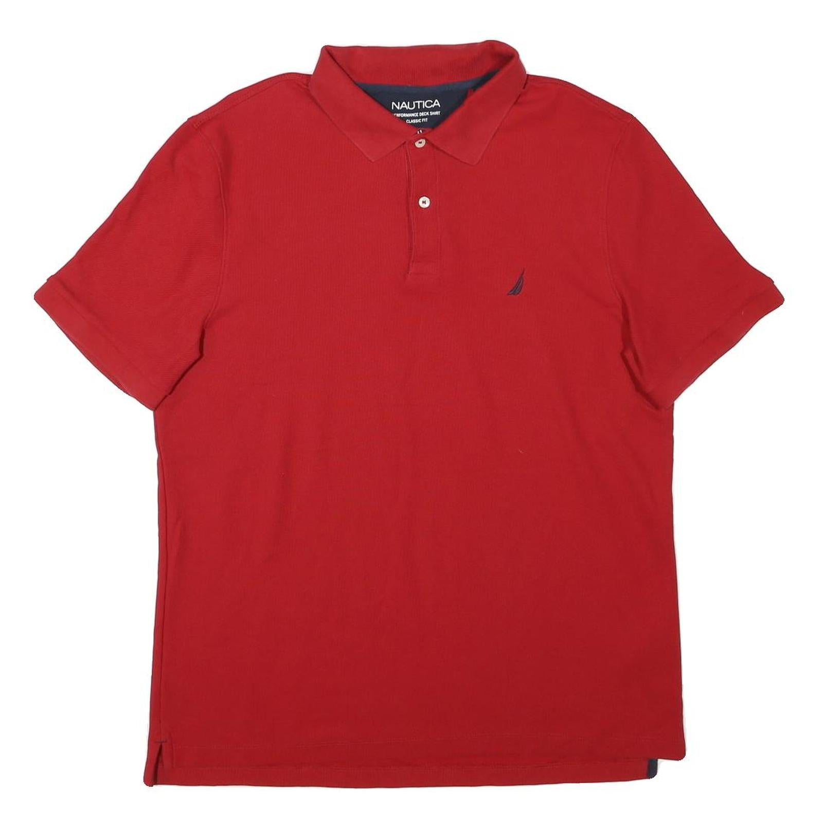NAUTICA Mens Red Short Sleeve Plain Polo Shirt XL Classic Fit Cotton Blend