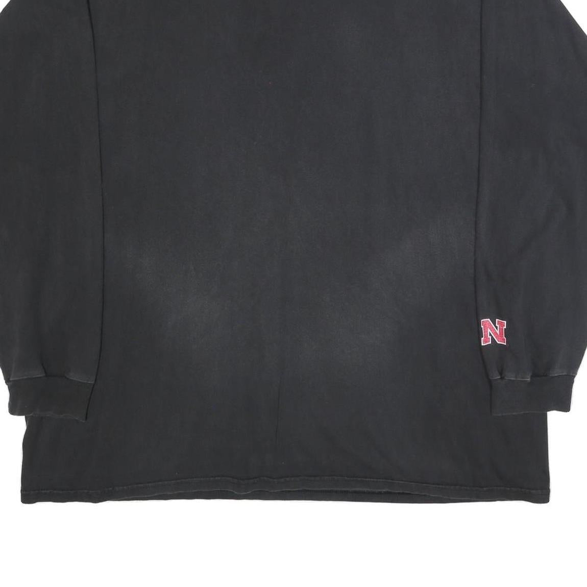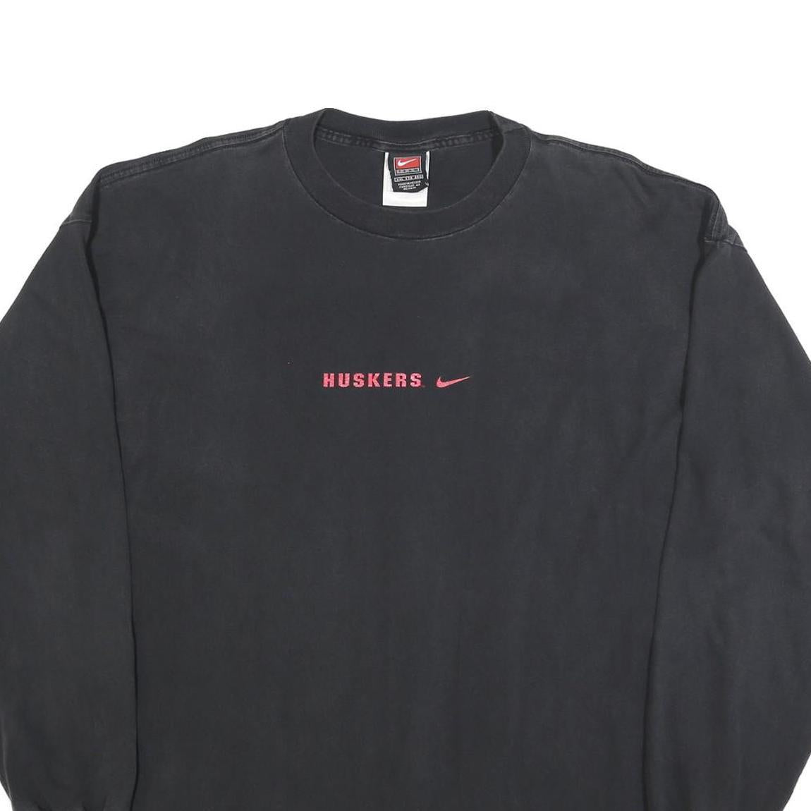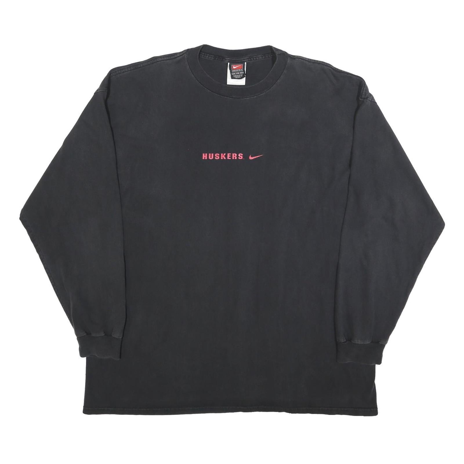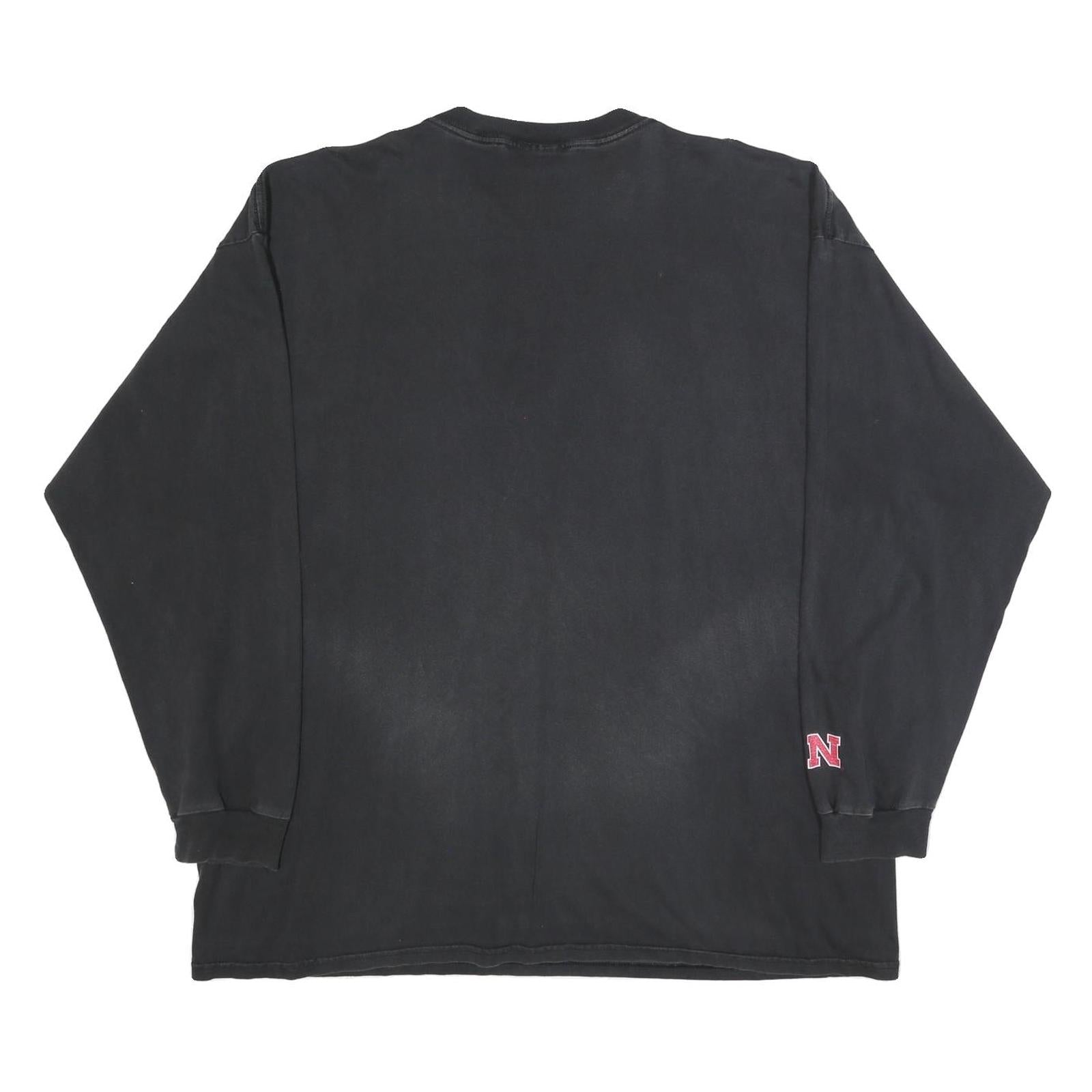 NIKE Mens Black 2XL Long Sleeve Crew Neck Huskers Graphic Vintage Cotton T-Shirt