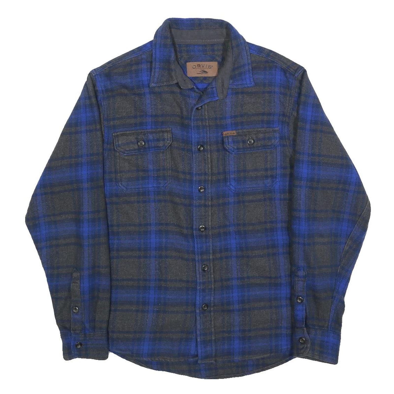 ORVIS Mens Blue & Grey Check Cotton Shirt M Long Sleeve Casual Relaxed Fit