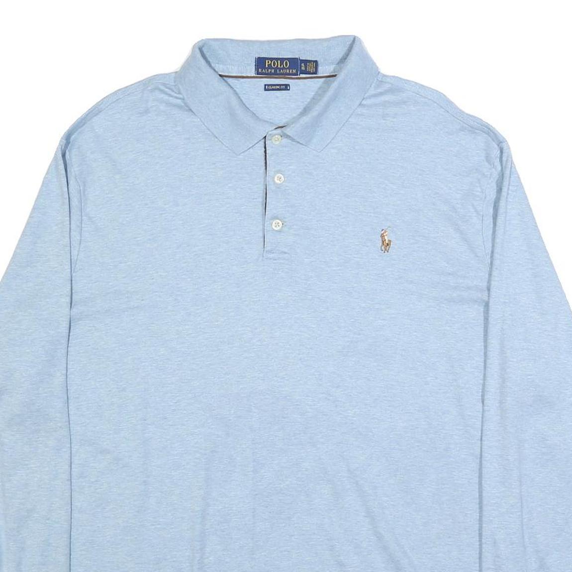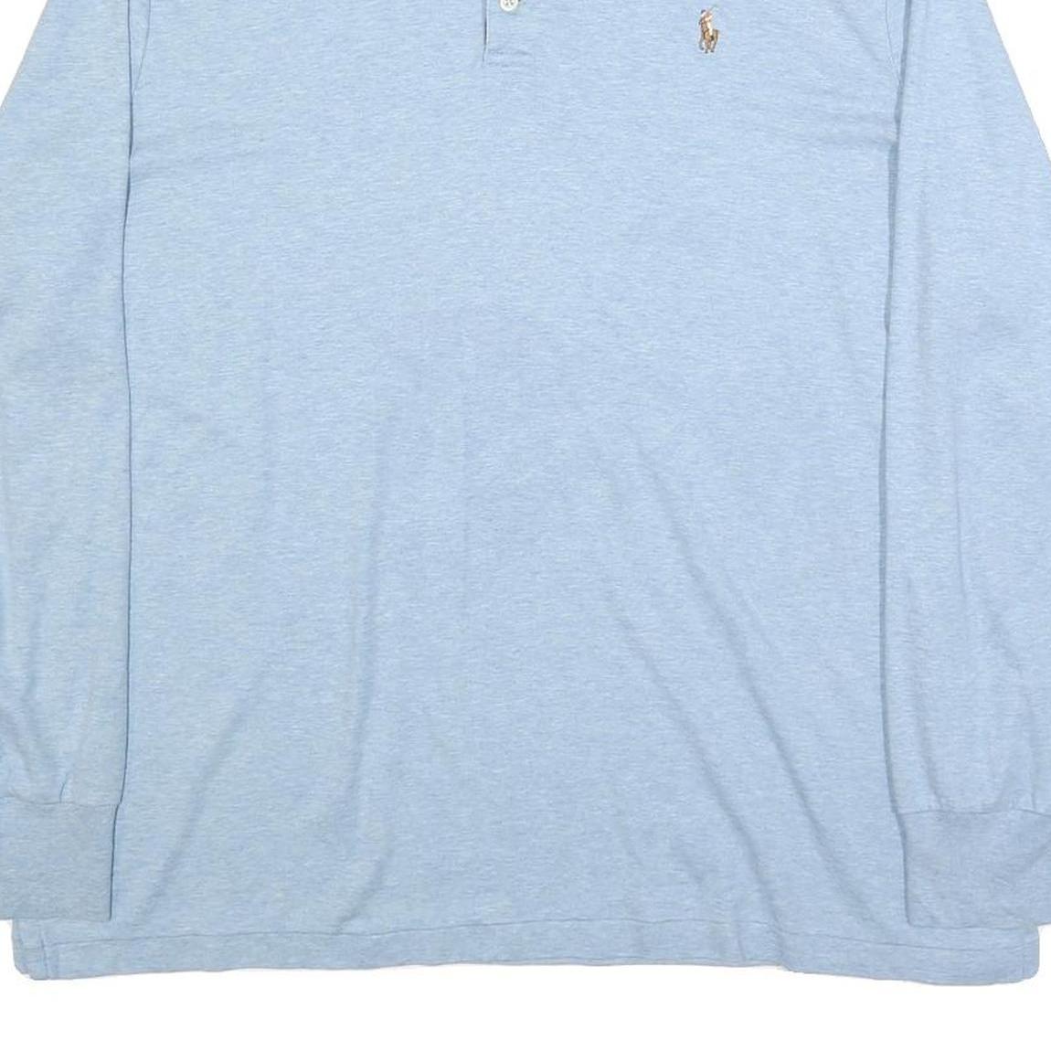 POLO RALPH LAUREN Mens Blue Long Sleeve Plain Polo Shirt XL Classic Style Casual