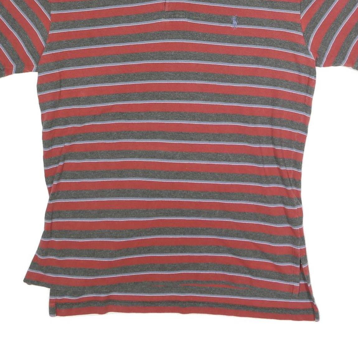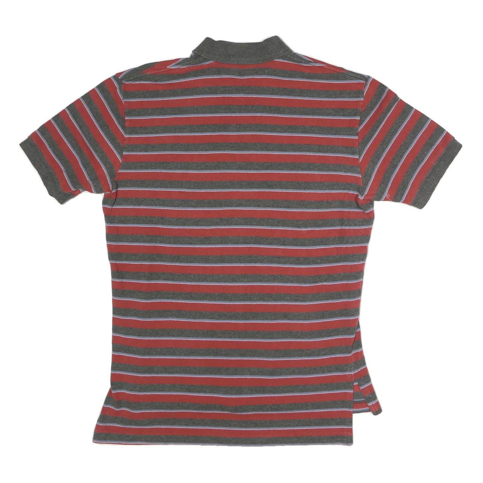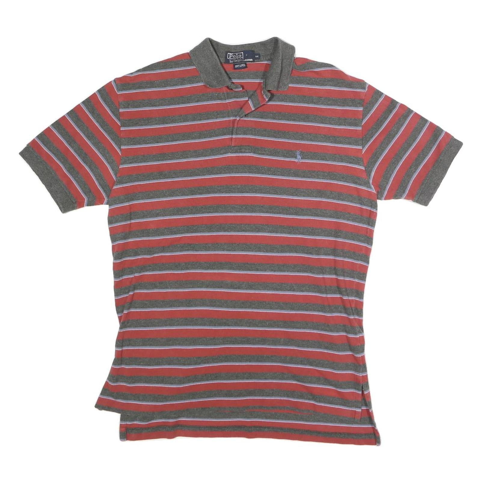 POLO RALPH LAUREN Mens Red & Grey Striped Short Sleeve Polo Shirt M Cotton