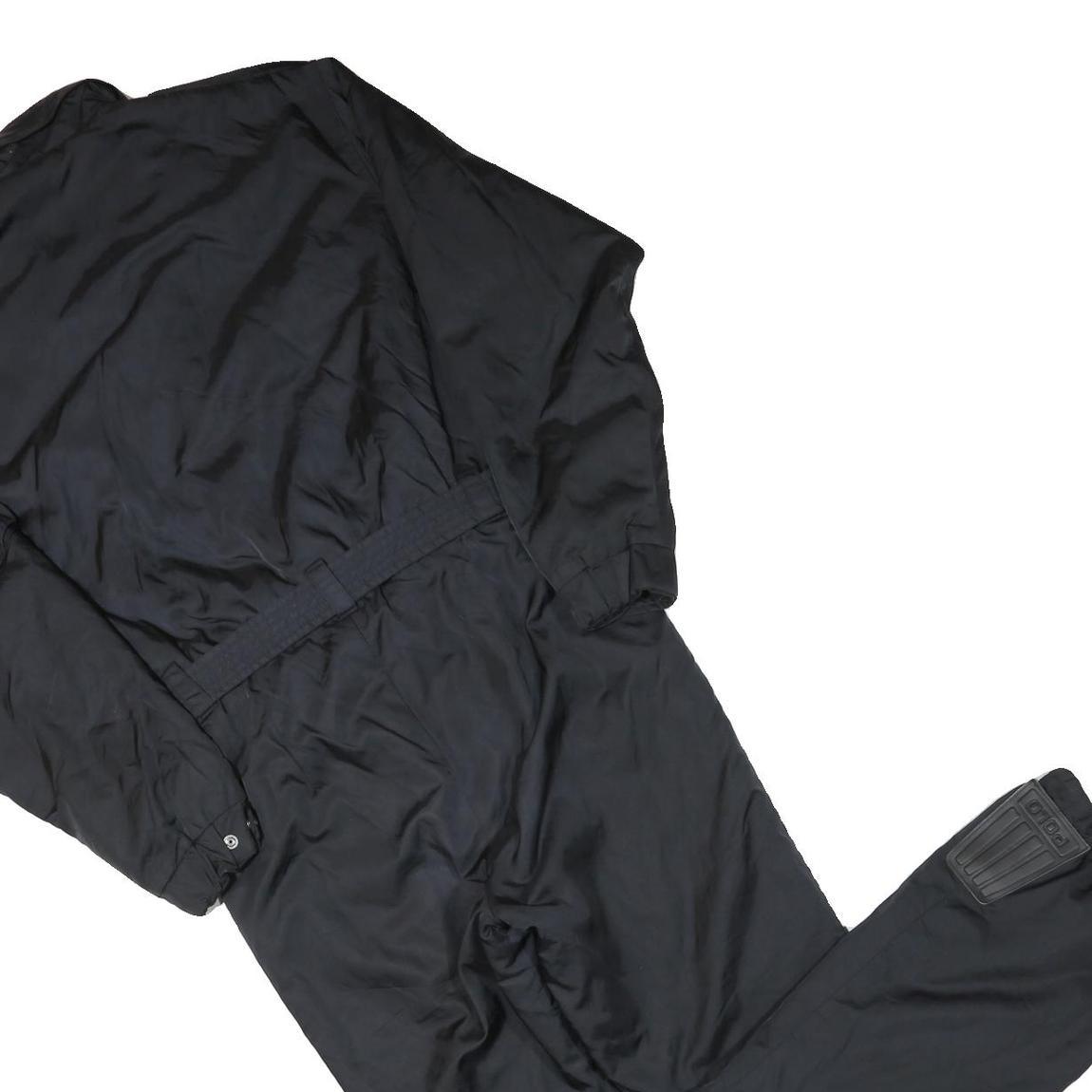 These Polo Sport Ralph Lauren womens dungarees are crafted in a sleek black polyester blend, providing a smooth and durable finish. The design features a structured collar and buttoned cuffs, with flap chest pockets for added practicality and style. The legs taper neatly to elasticated ankle hems with reinforced pads, perfect for a comfortable and secure fit.