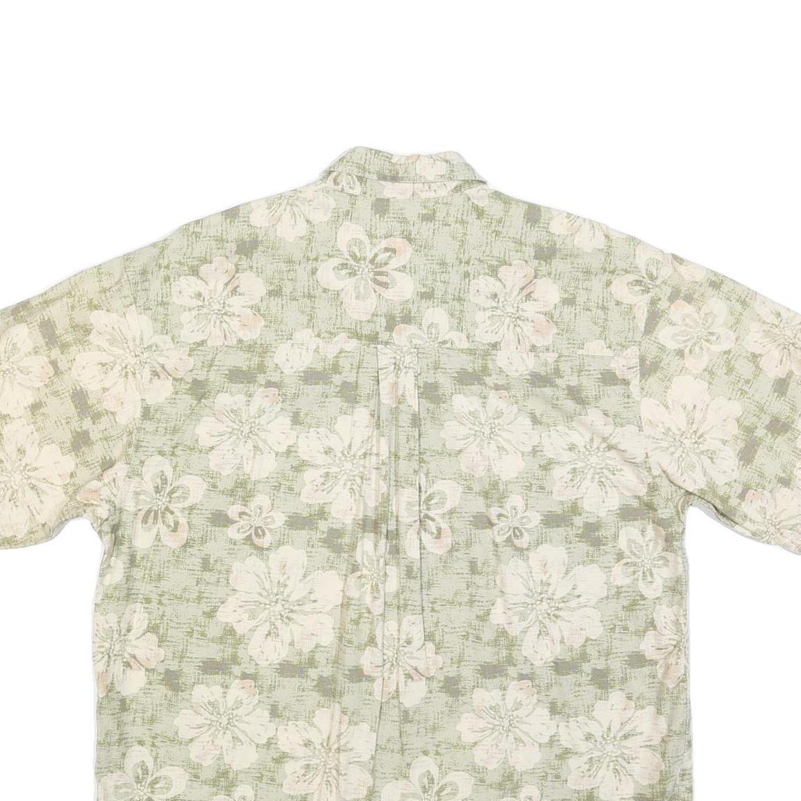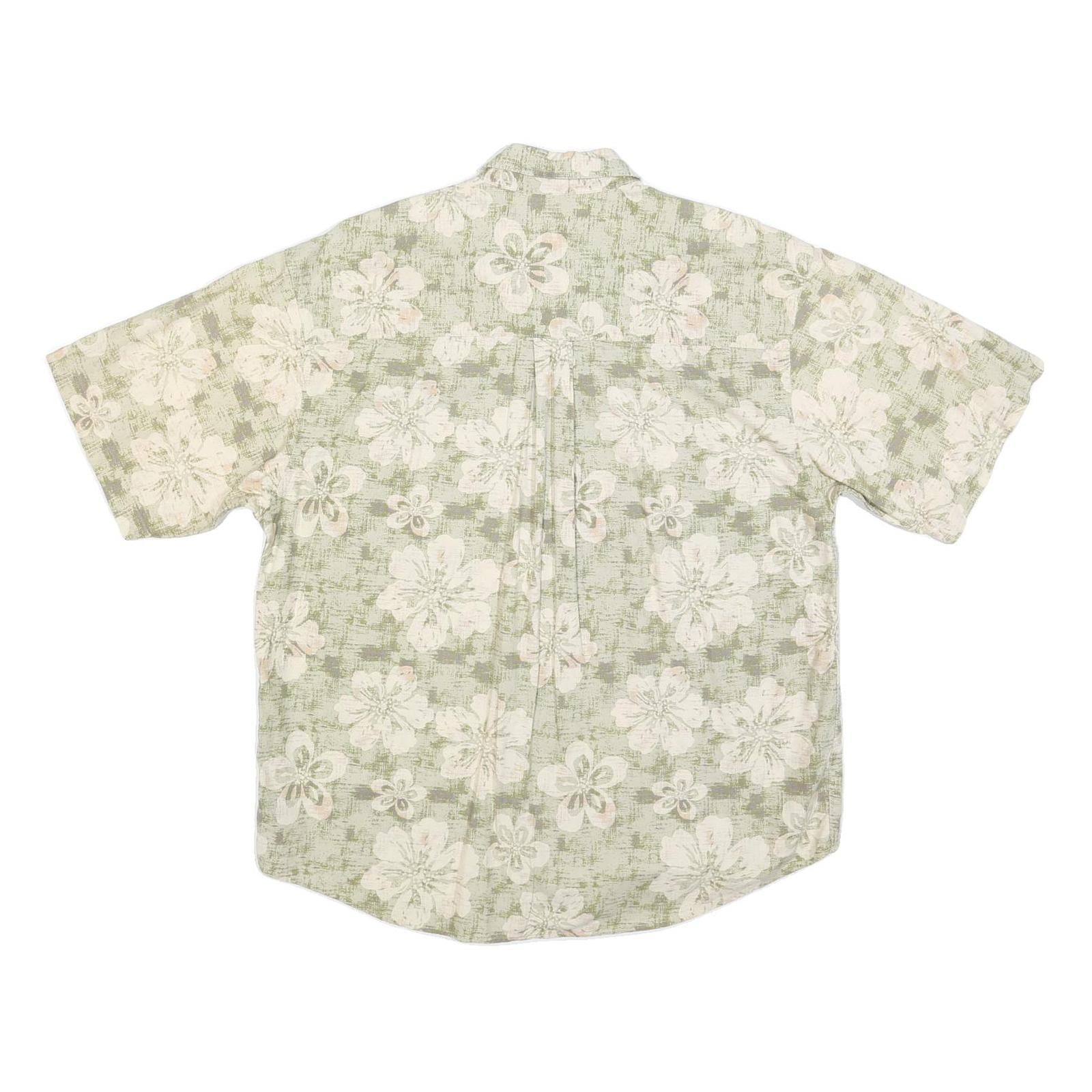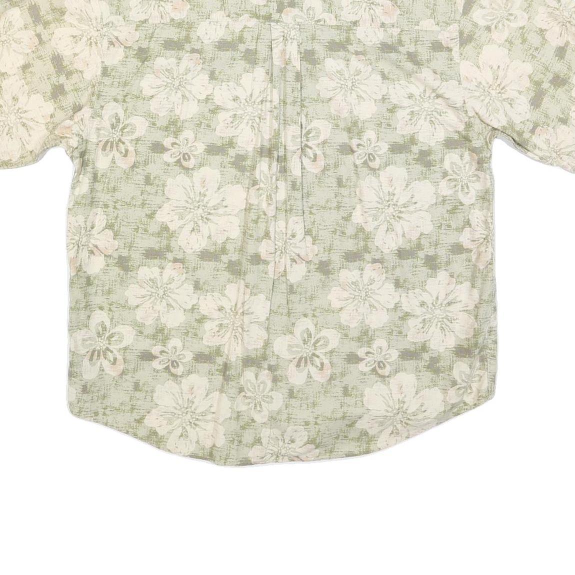 PURITAN Mens Green & Cream Floral Short Sleeve Shirt L Cotton Blend Summer