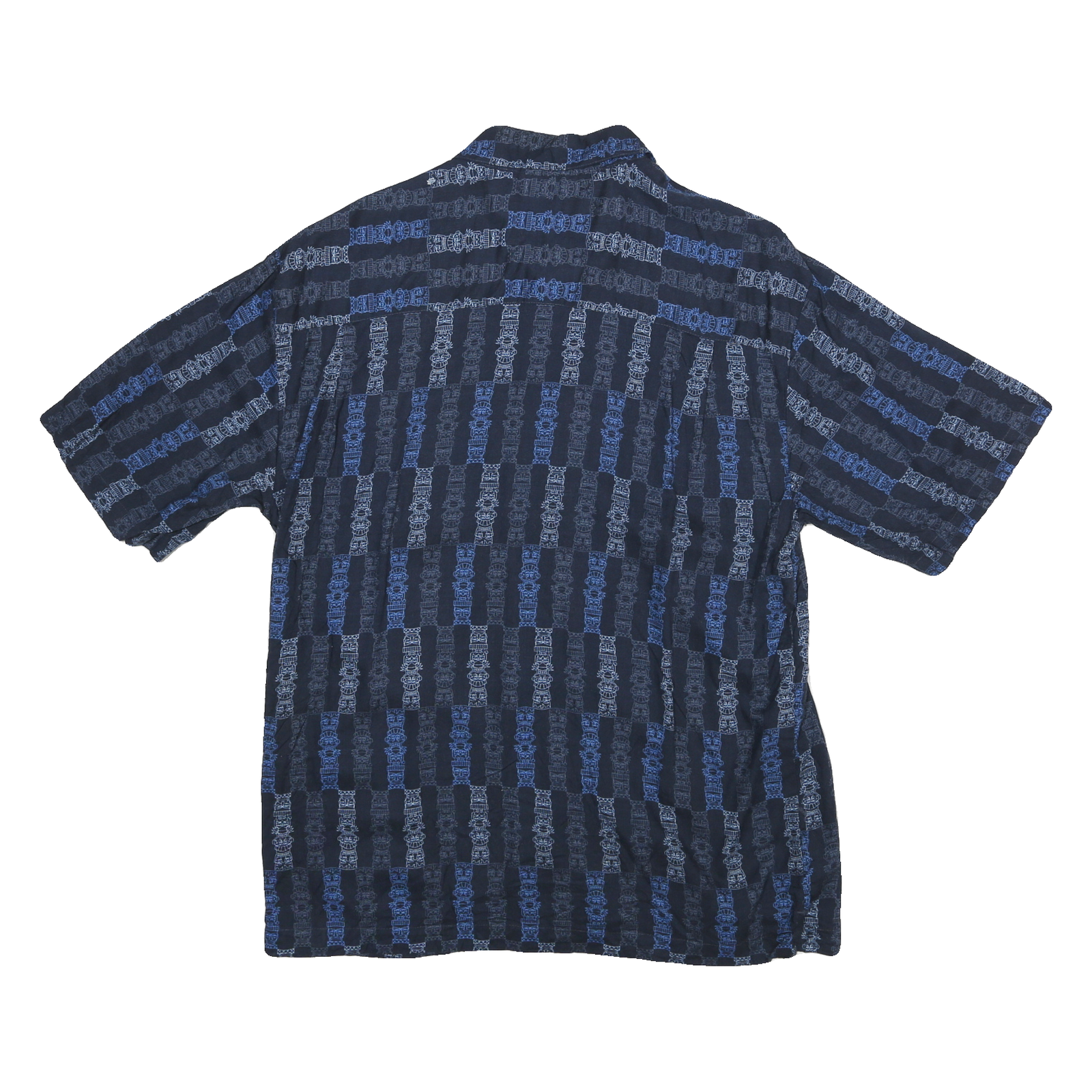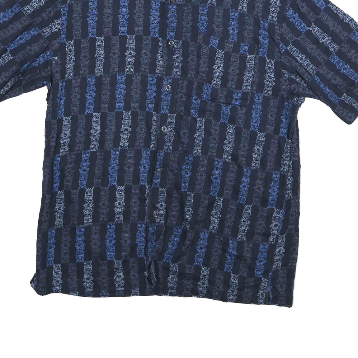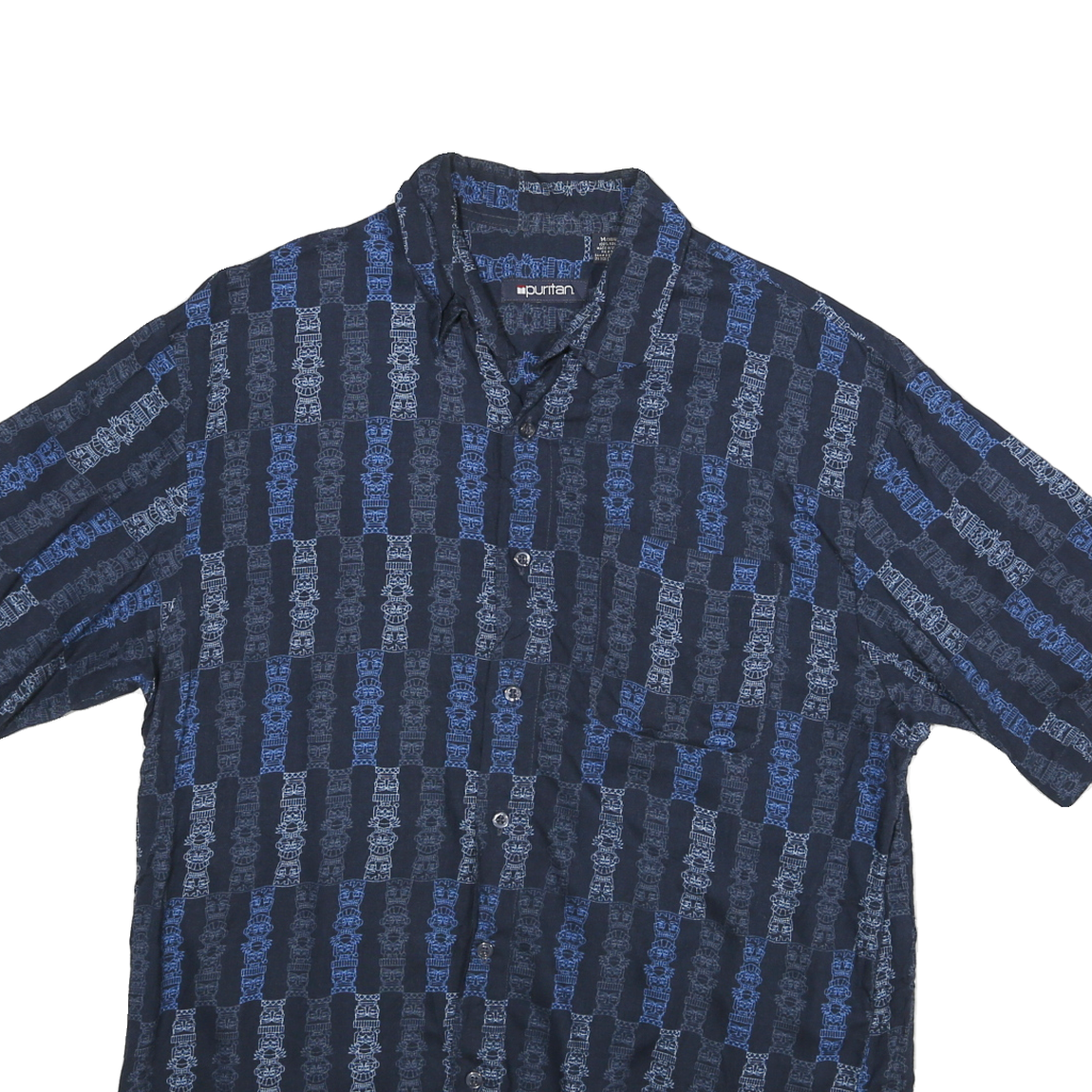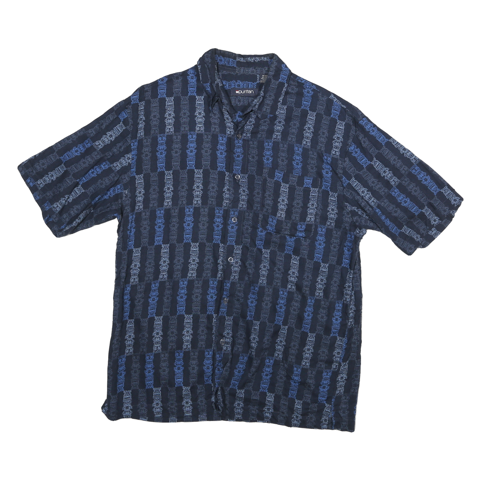 PURITAN Mens Navy Blue Patterned Rayon Shirt M Casual Button Up