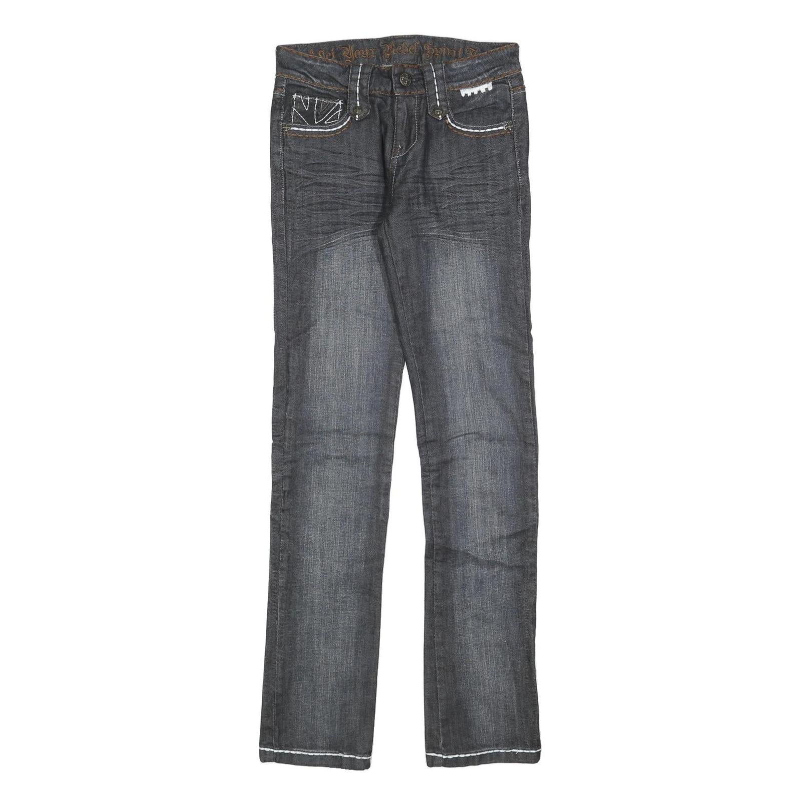 REBEL SPIRIT Womens Slim Blue Denim Jeans W26 L32 British Flag Stitching