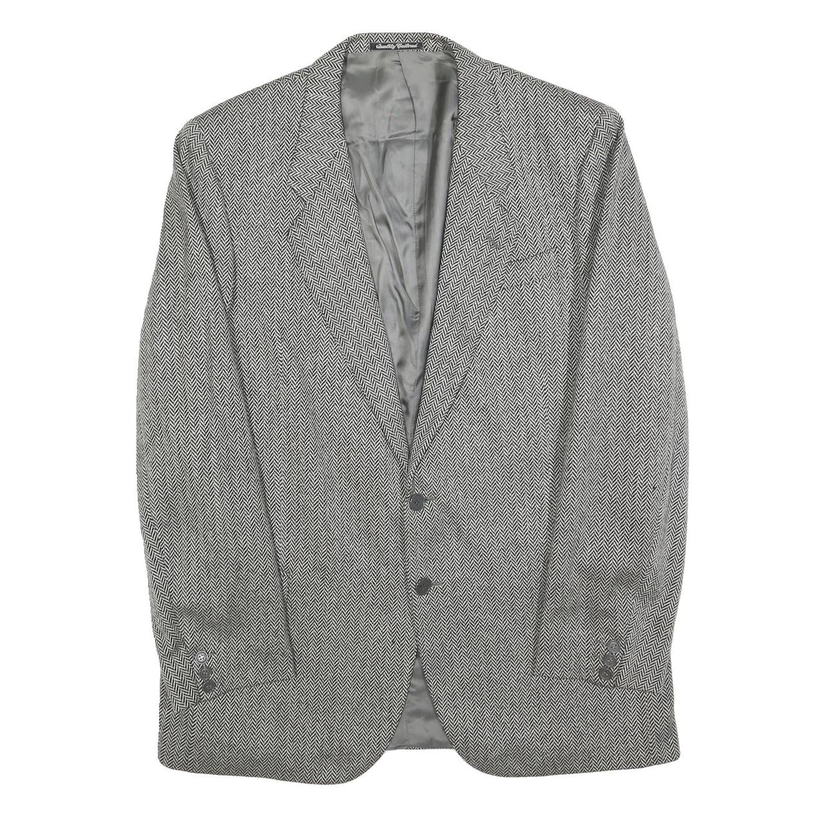 REDI Mens Black & White Classic Jacket M Cashmere Blend Herringbone Pattern