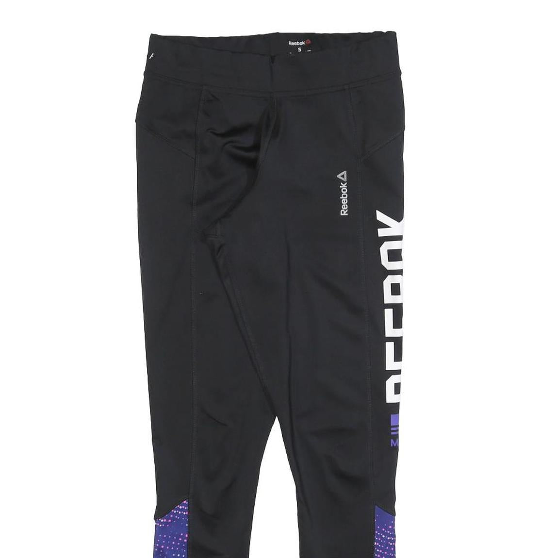 REEBOK Womens Joggers Black & Purple Slim Skinny S W24 L27 Logo Print Activewear