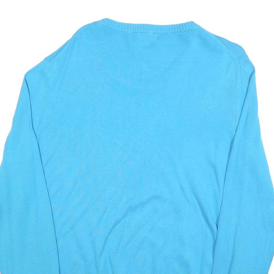 ROYAL CLASS Mens Blue Plain Jumper Crew Neck Basic Knit XL Cotton Lightweight