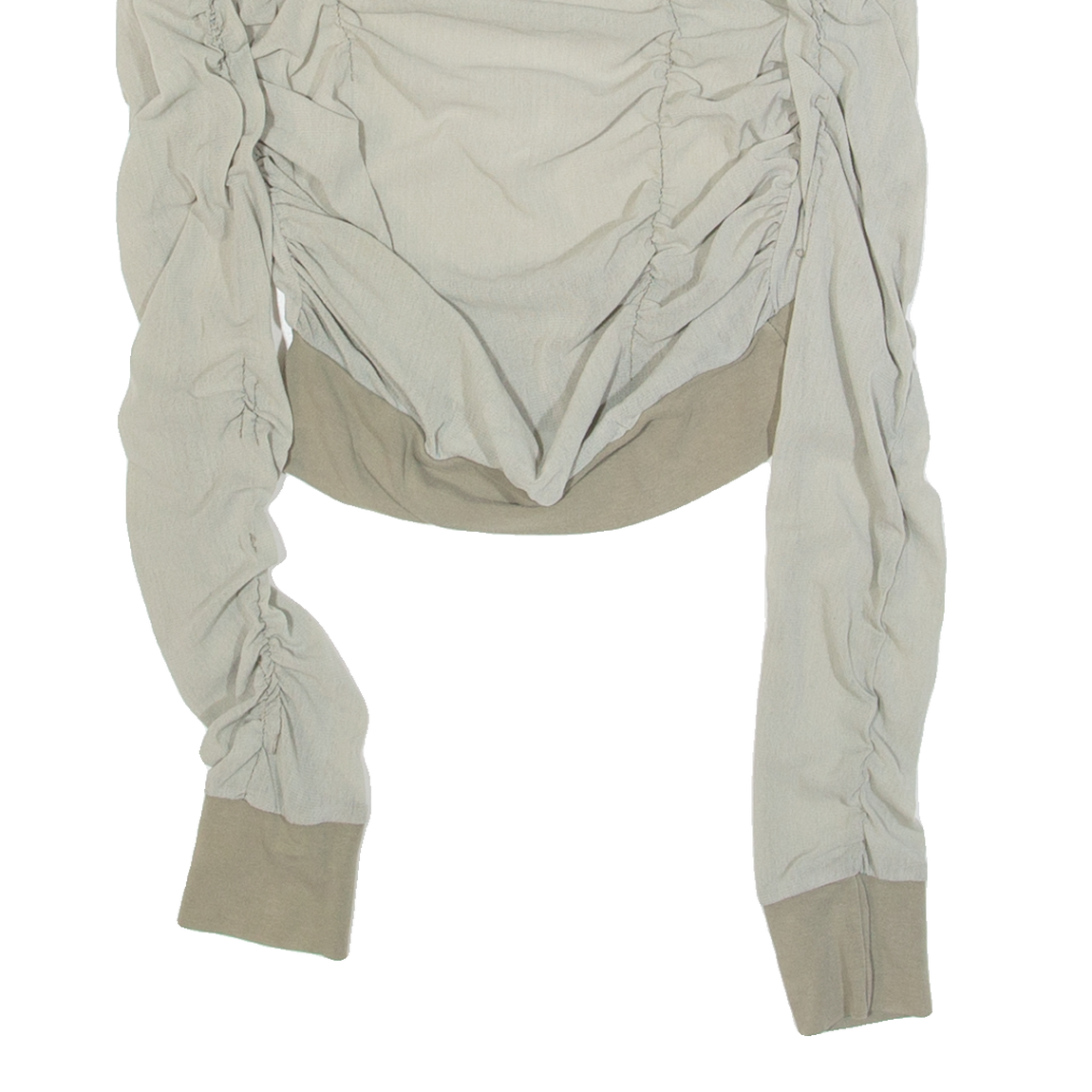 Ruched Womens Top Green Long Sleeve S