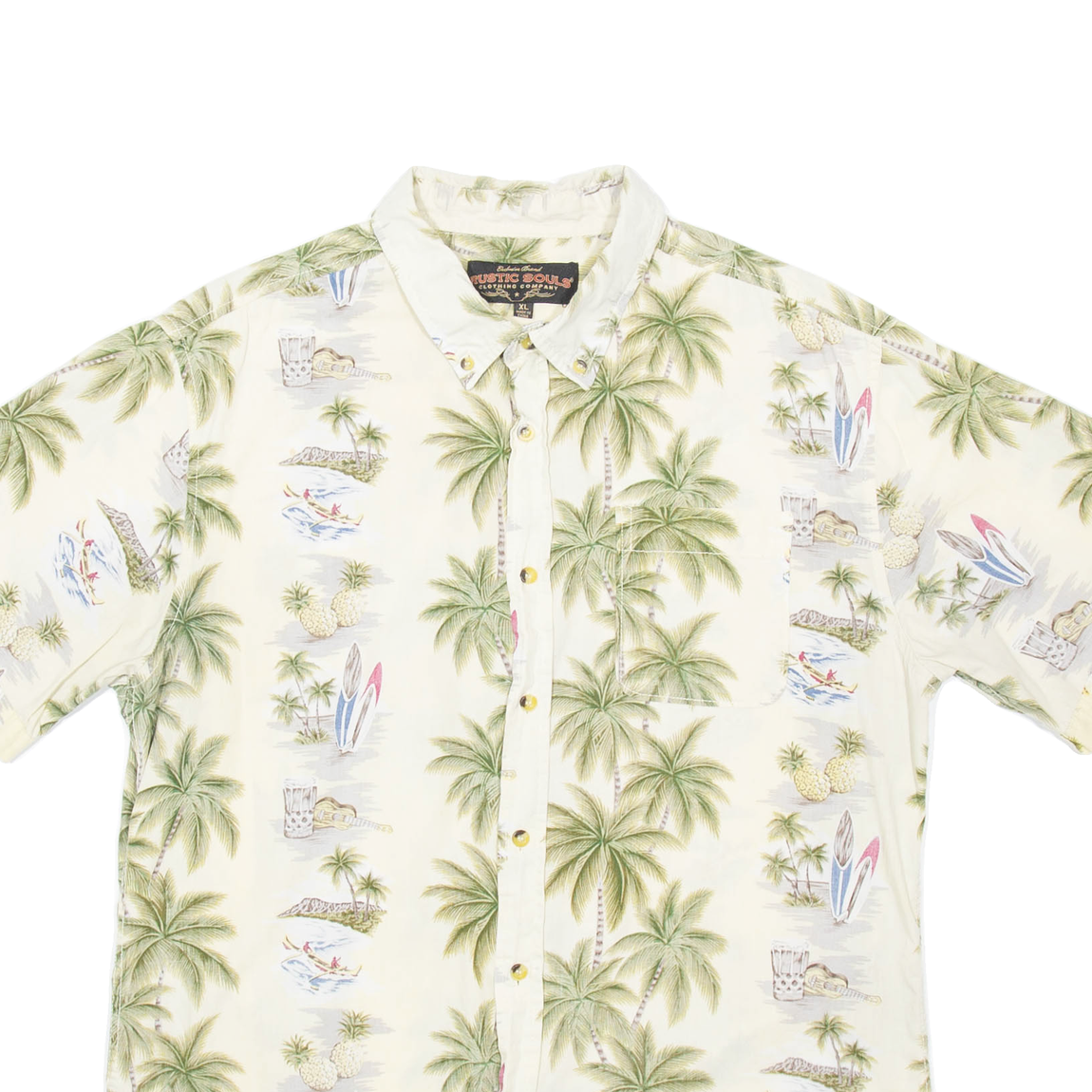 RUSTIC SOULS Palm Tree Mens Hawaiian Shirt Green Crazy Pattern XL