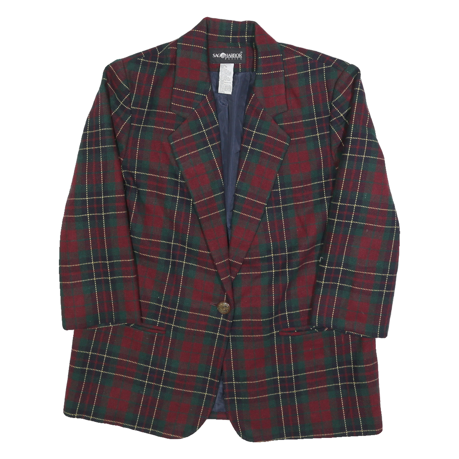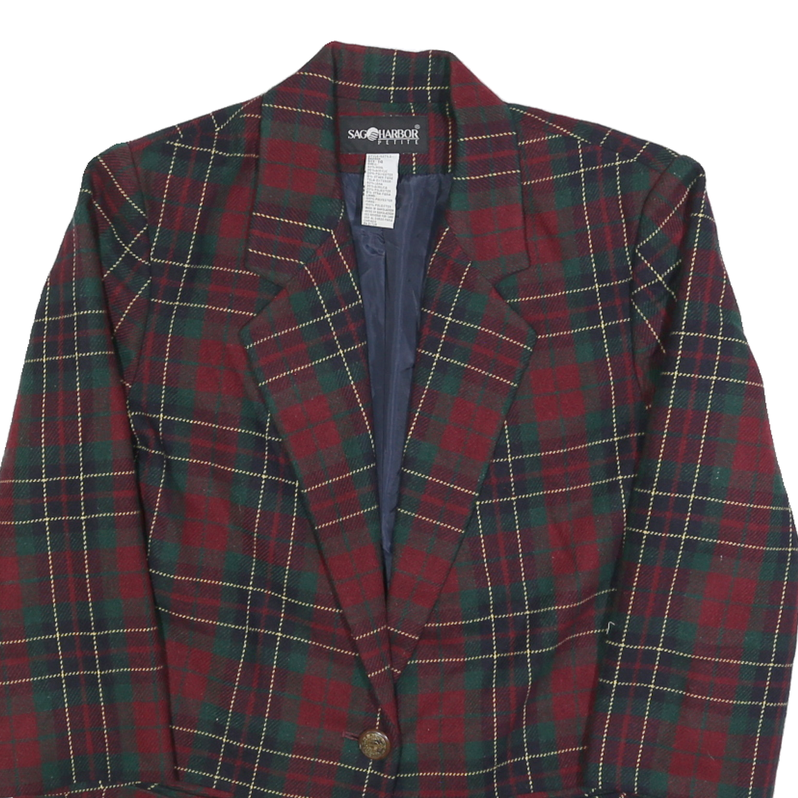 SAG HARBOR Womens Red & Green Checked Wool Blend Classic Jacket L Button Closure