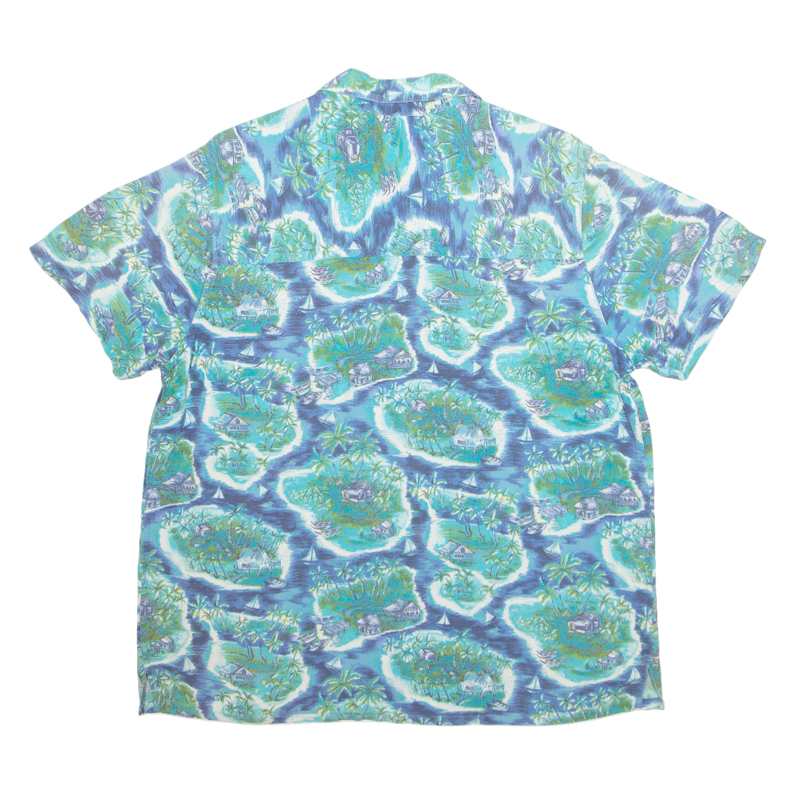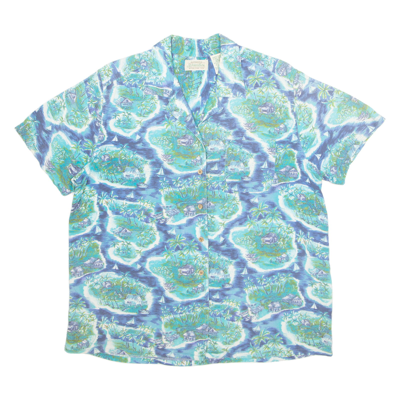 ST JOHN'S BAY Mens Hawaiian Shirt Blue Crazy Pattern L