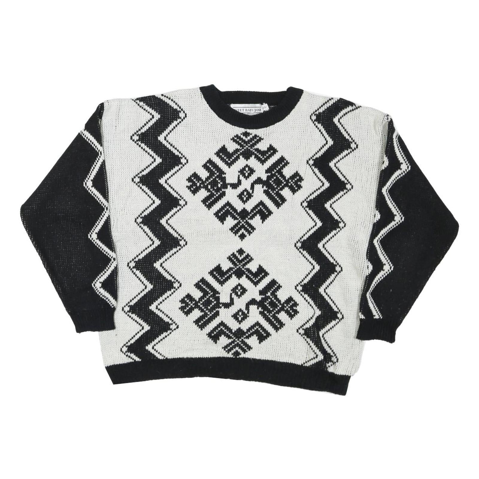 SWEET BABY JANE Womens Black & White Patterned Jumper Crew Neck Basic Knit M