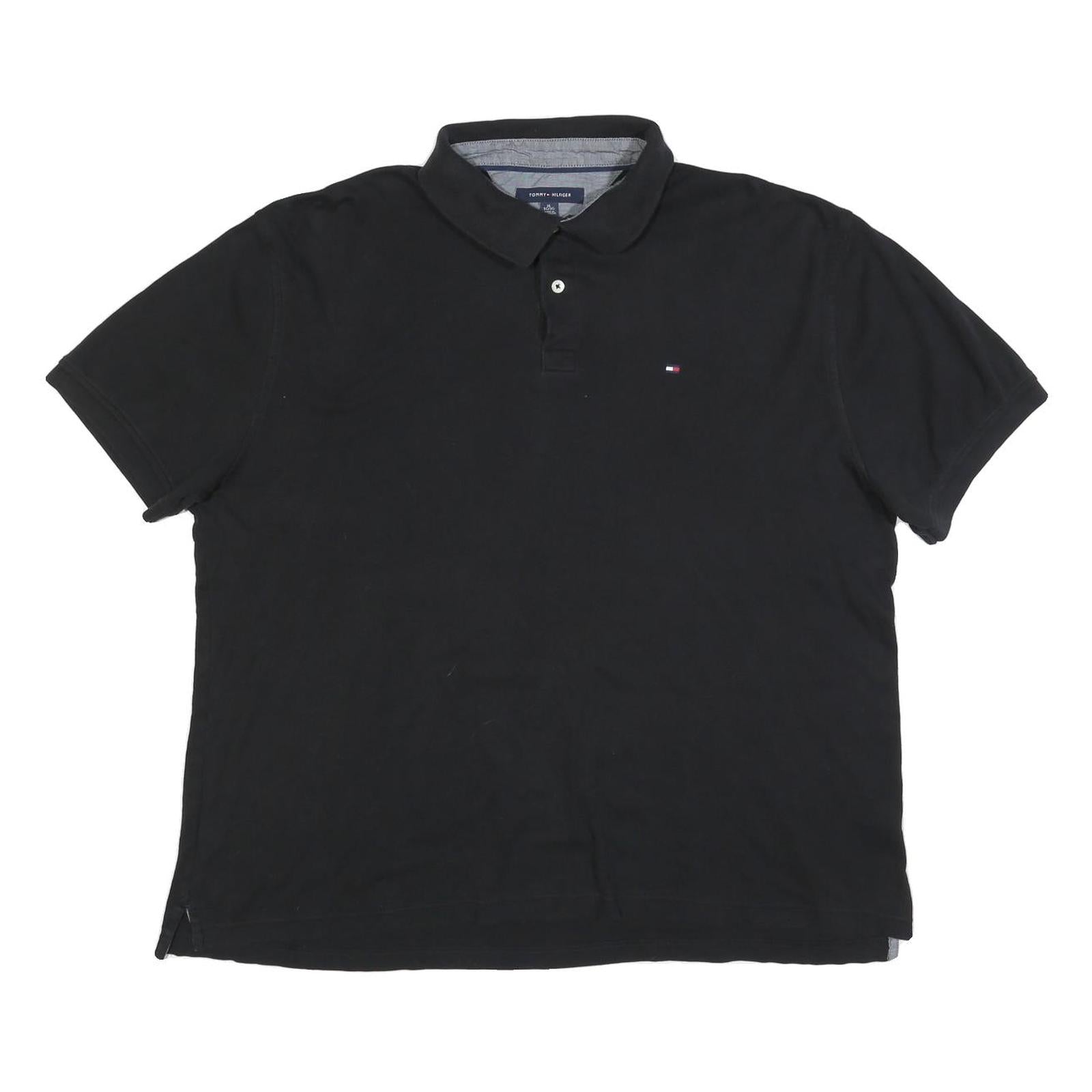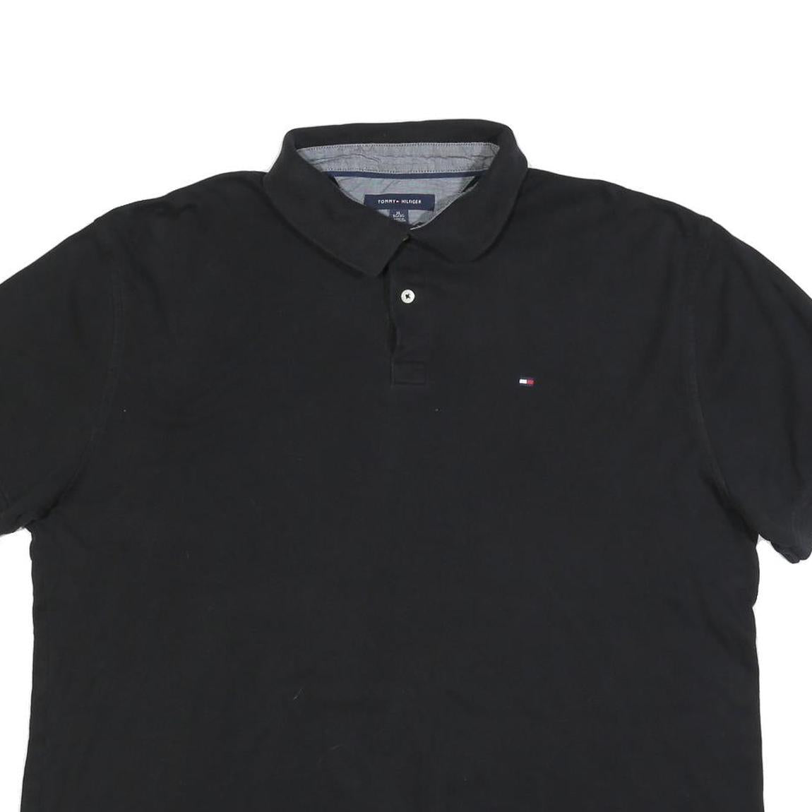 TOMMY HILFIGER Mens Black Short Sleeve Polo Shirt XL Cotton Blend Classic