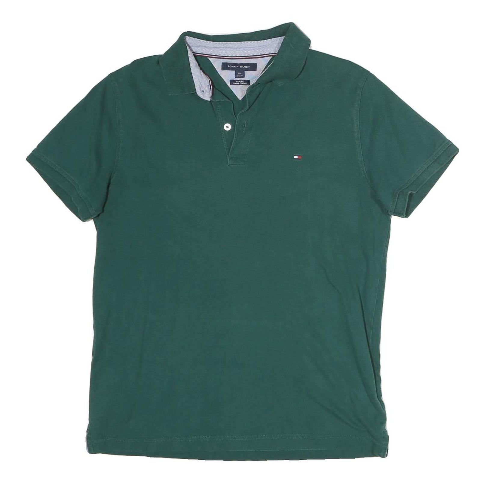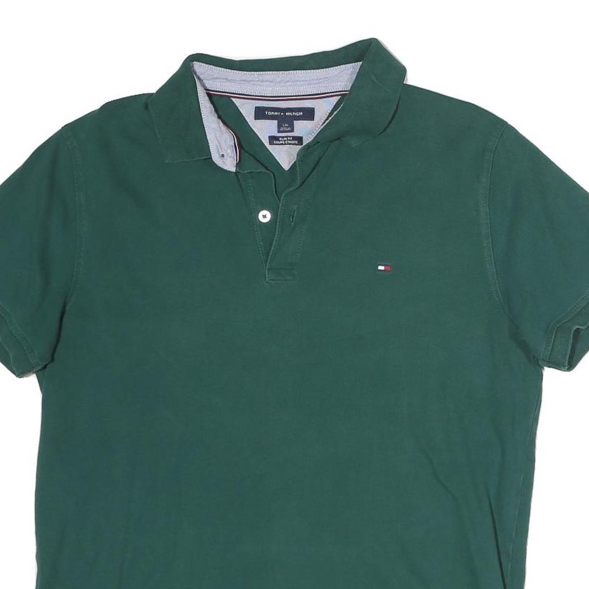 TOMMY HILFIGER Mens Green Polo Shirt L Cotton Short Sleeve Small Logo