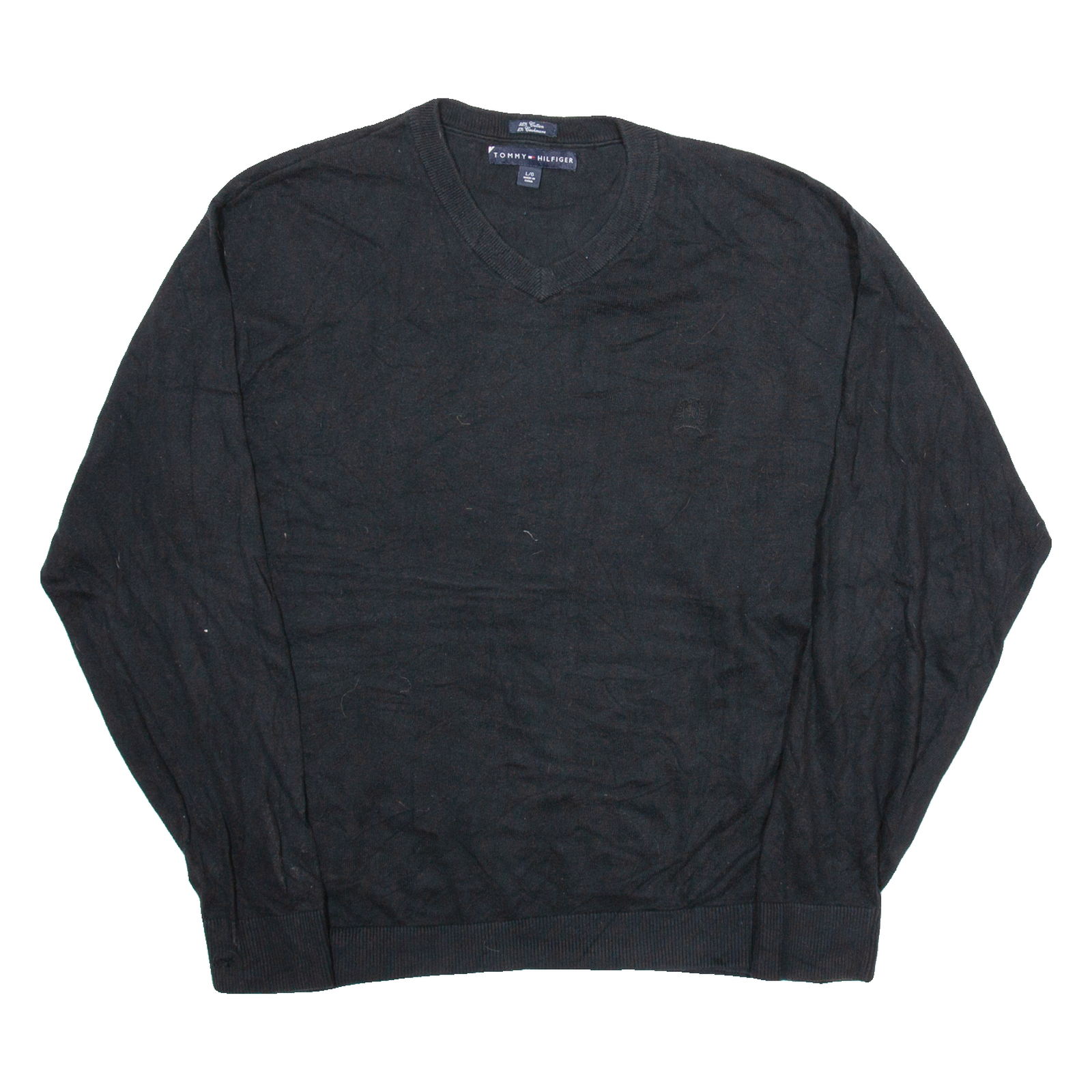 TOMMY HILFIGER Mens Jumper Black V-Neck Tight Knit L