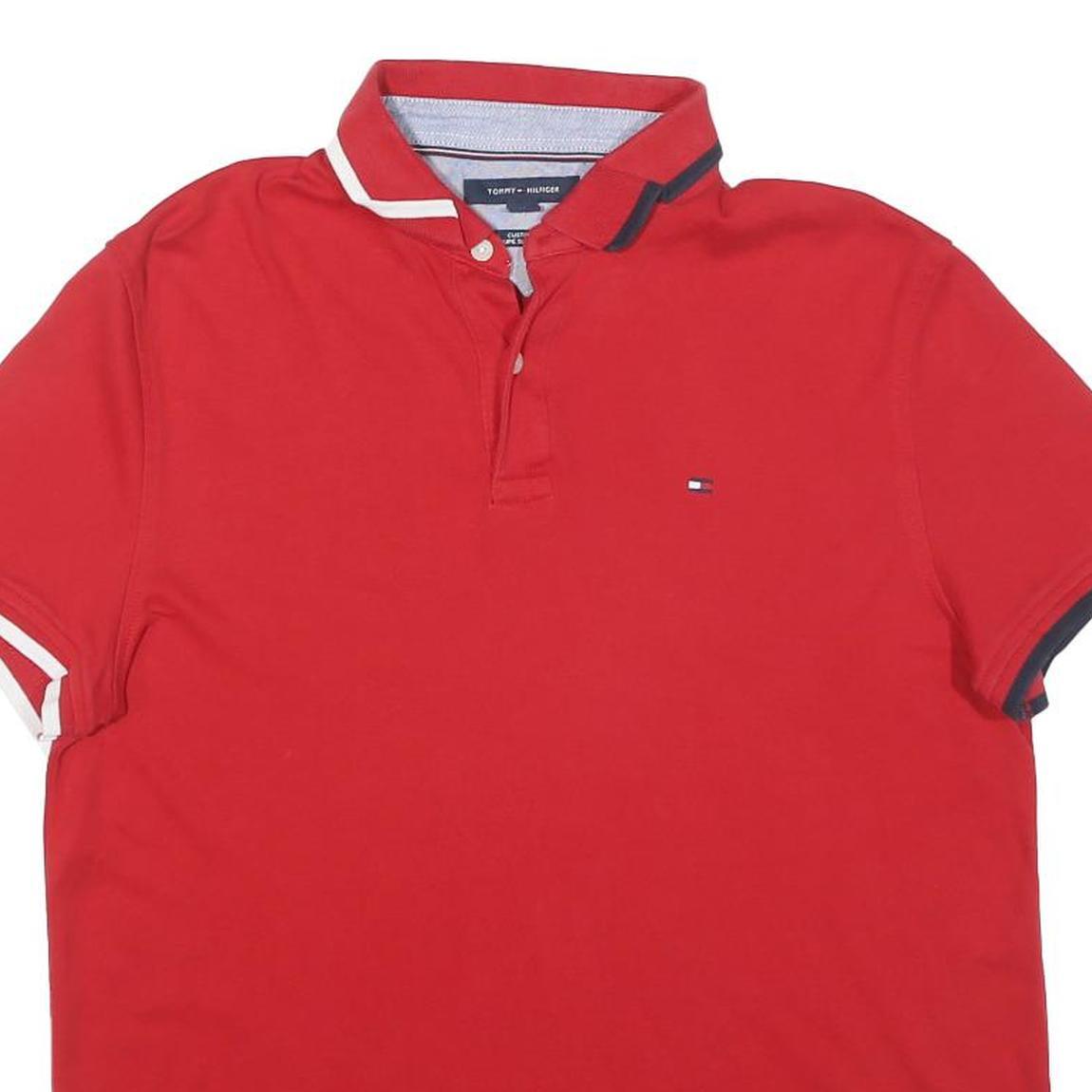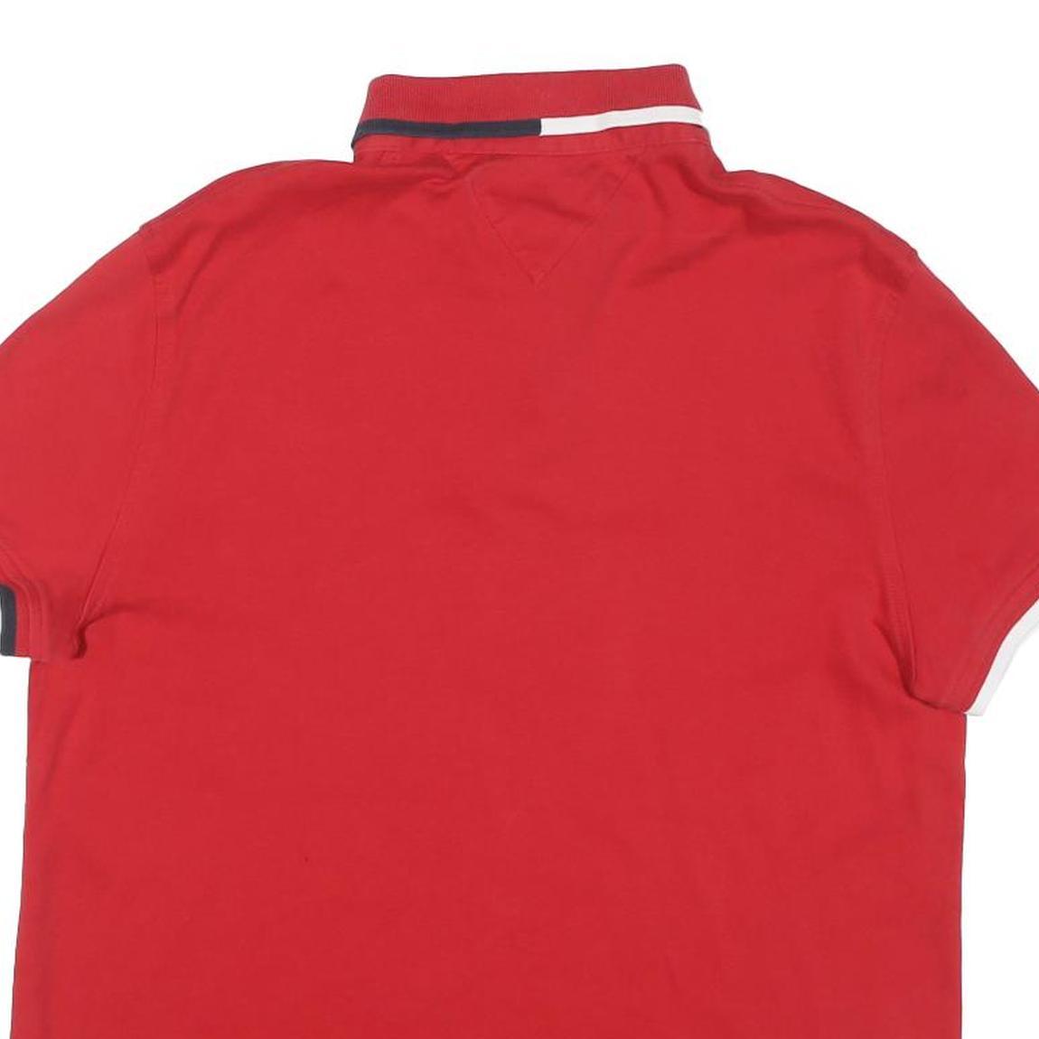 TOMMY HILFIGER Mens Red Short Sleeve Plain M Cotton Blend Polo Shirt Casual