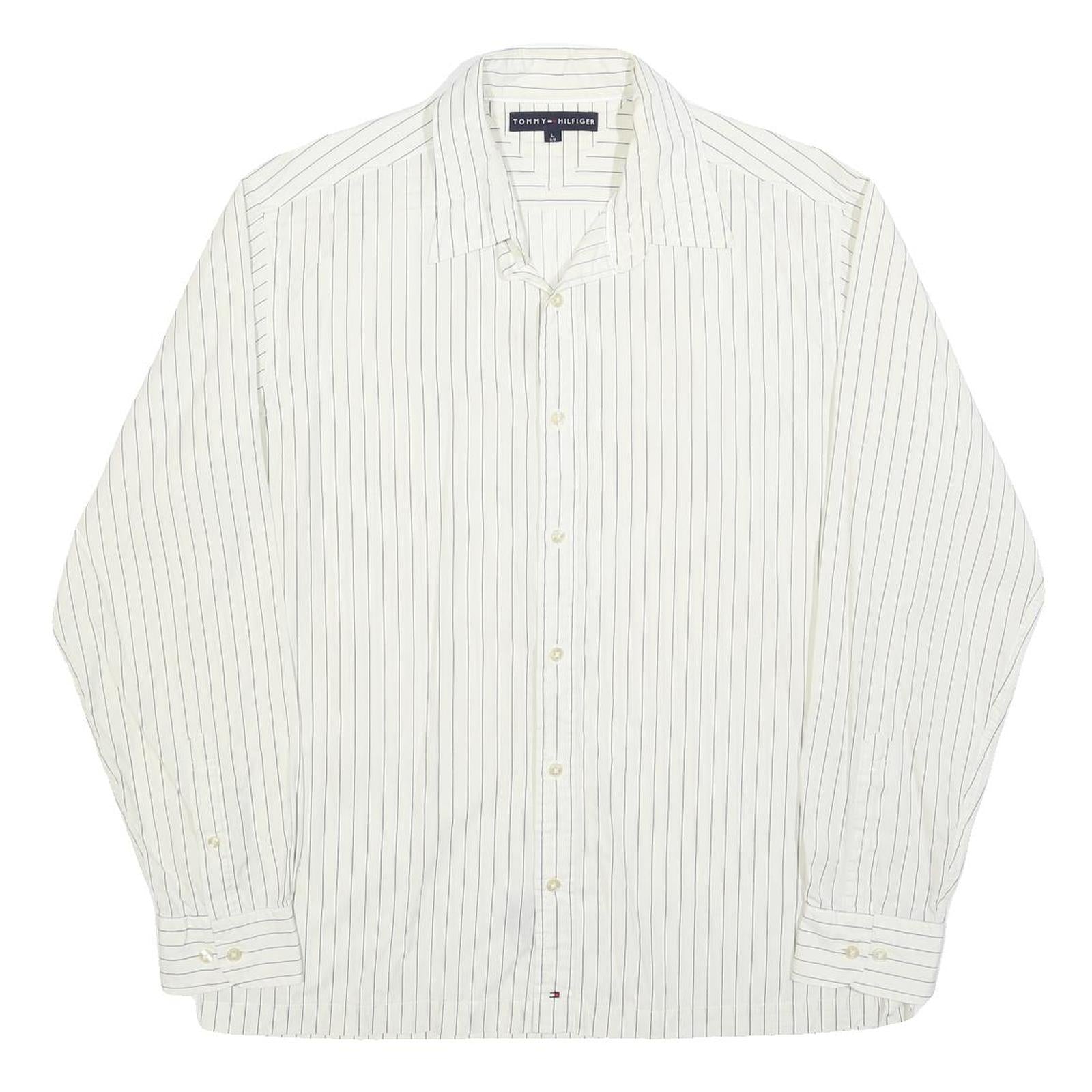 TOMMY HILFIGER Mens White & Black Pinstripe Shirt L Classic Long Sleeve Button