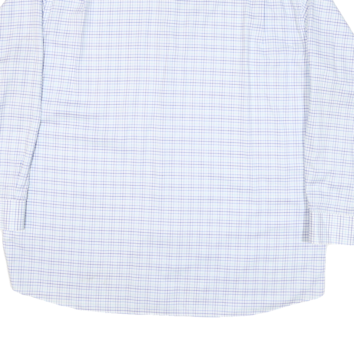 This Tommy Hilfiger mens shirt features a classic check pattern in white with blue and purple lines, creating a clean and timeless look. The shirt has a traditional spread collar and white buttons down the front, finished with buttoned cuffs.