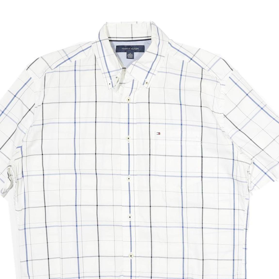 TOMMY HILFIGER Mens White & Blue Checked Shirt M Short Sleeve Button Down Cotton
