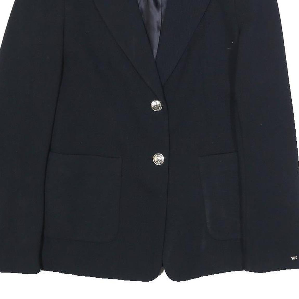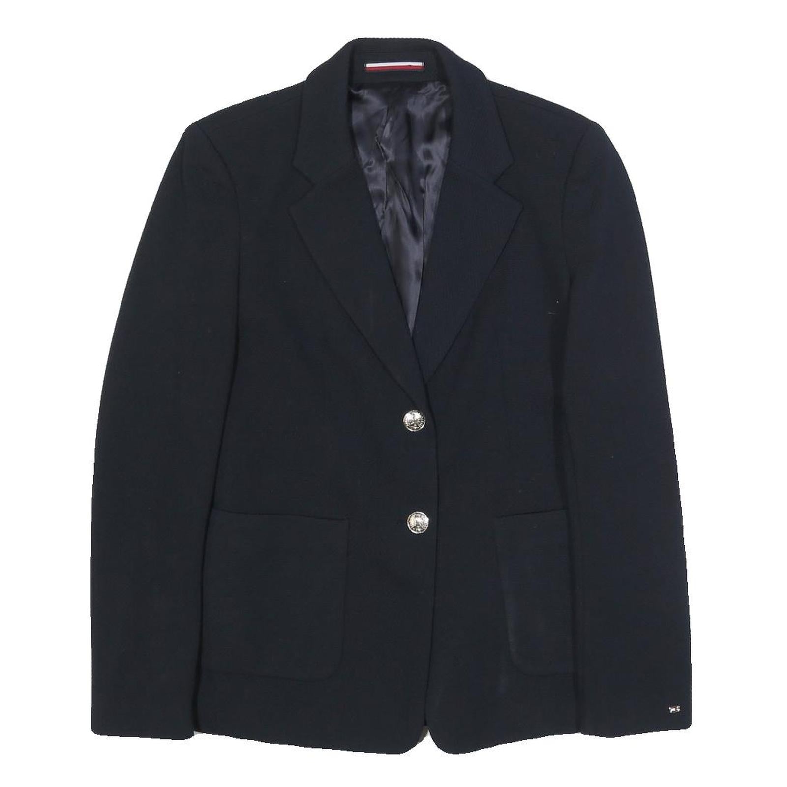 TOMMY HILFIGER Womens Black Classic Jacket UK 8 Polyester Blend Button Plain