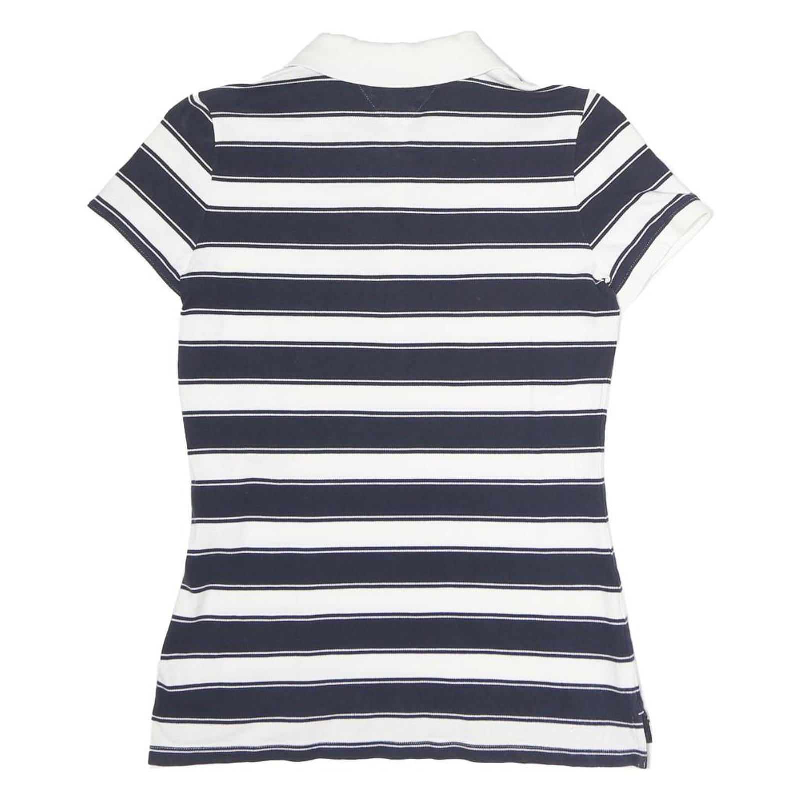 TOMMY HILFIGER Womens Navy & White Striped Short Sleeve Polo Shirt S Cotton