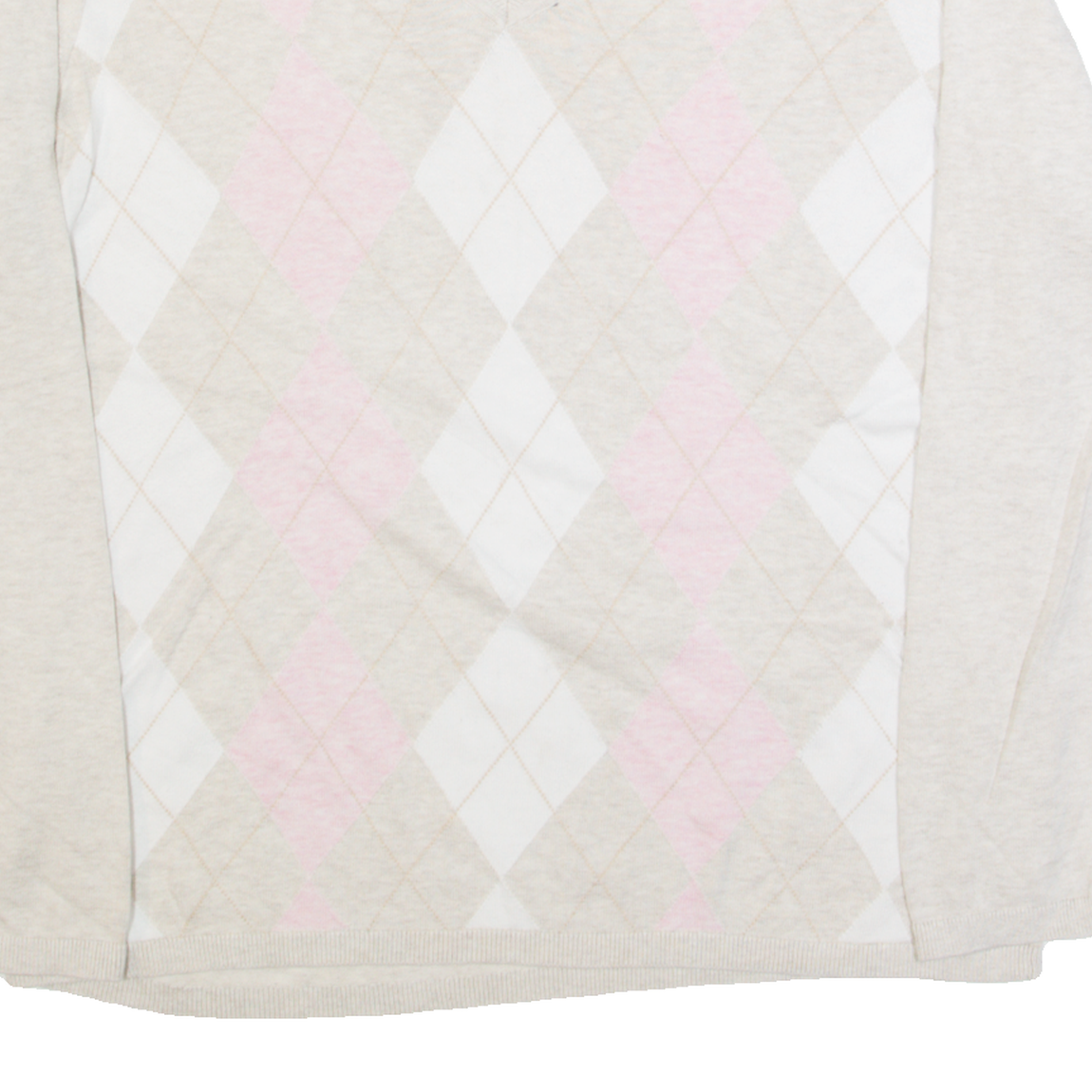 TOMMY HILFIGER Womens Patterned Jumper Beige Argyle V-Neck Tight Knit XL