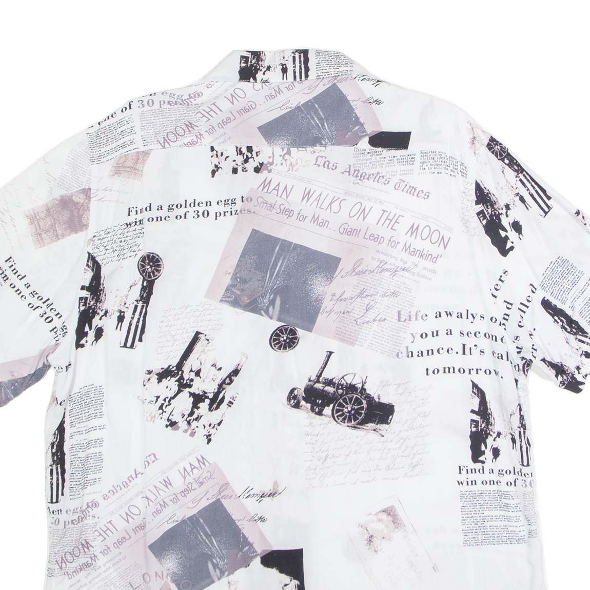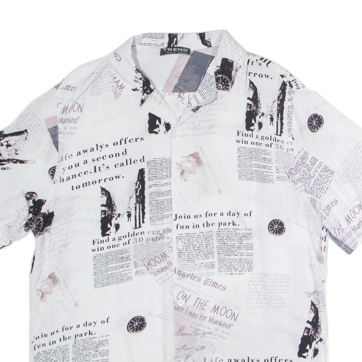 TREND Newspaper Mens Shirt White Viscose Crazy Pattern M