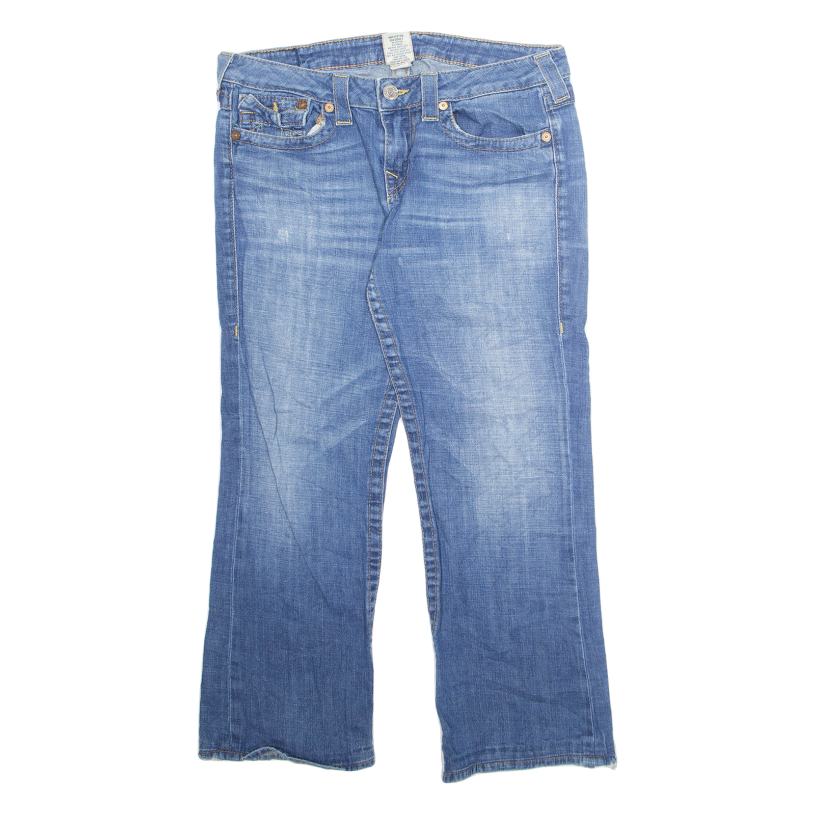 We understand that clothing sizes can vary depending on the brand, style, and age of the item. Therefore, along with providing the size stated in the label, we hand measure all our items to give you the exact measurements. Unless stated otherwise all measurements are taken with the item un-stretched.