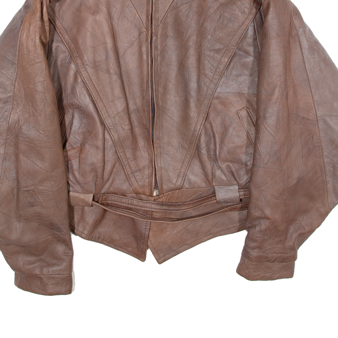 VERA PELLE Belted Womens Aviator Jacket Brown Leather L