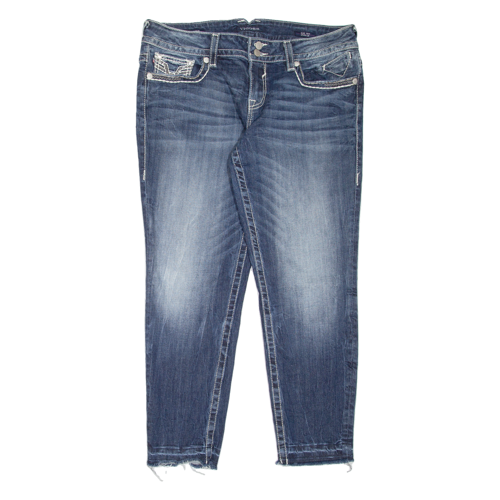 We understand that clothing sizes can vary depending on the brand, style, and age of the item. Therefore, along with providing the size stated in the label, we hand measure all our items to give you the exact measurements. Unless stated otherwise all measurements are taken with the item un-stretched.