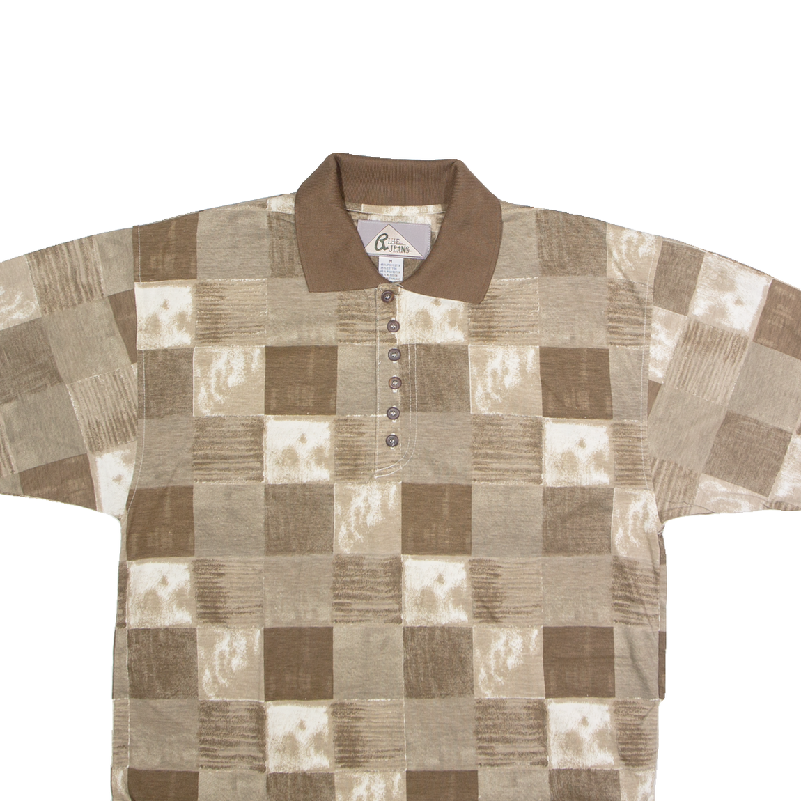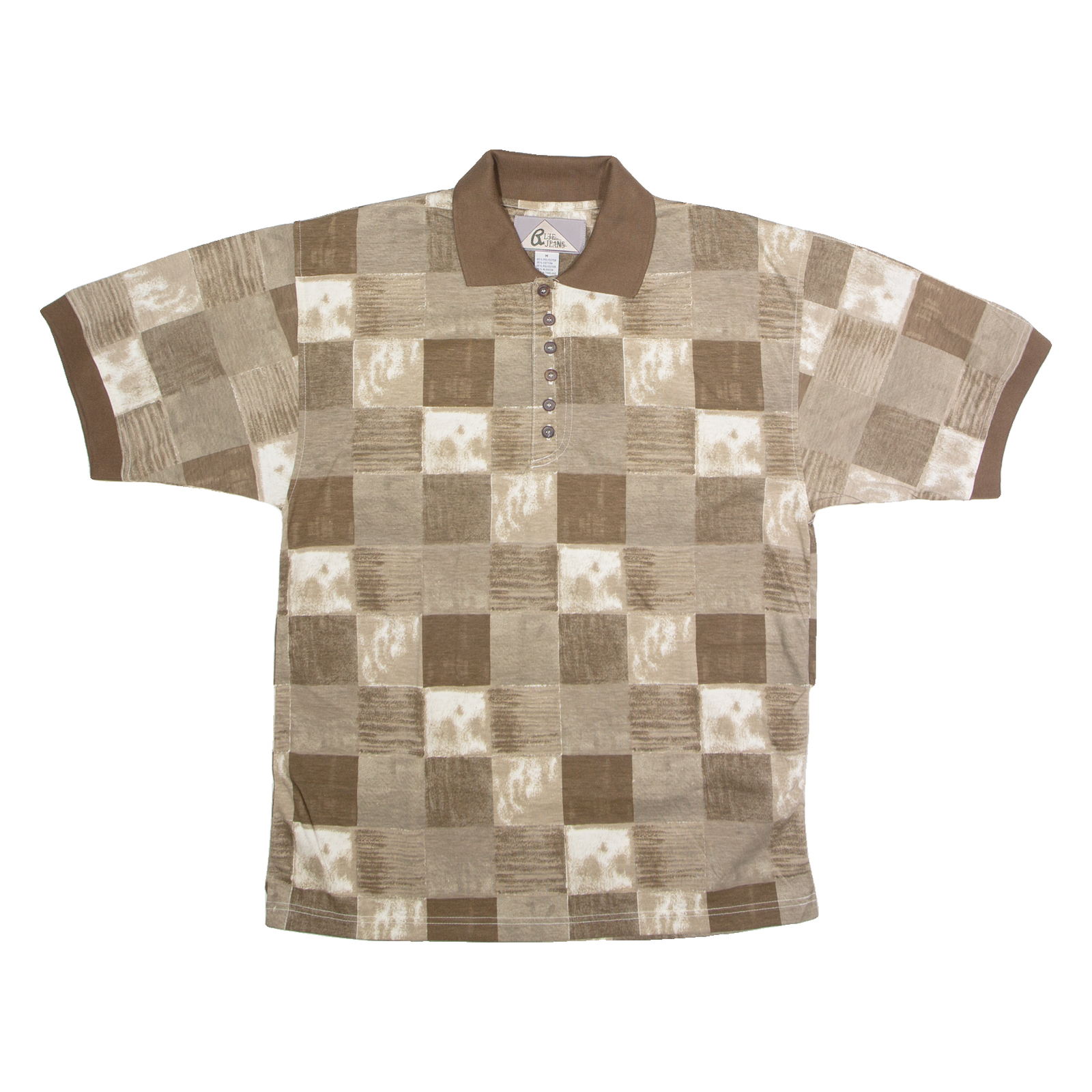 BLUE JEANS Mens Polo Shirt Brown 90s Check M