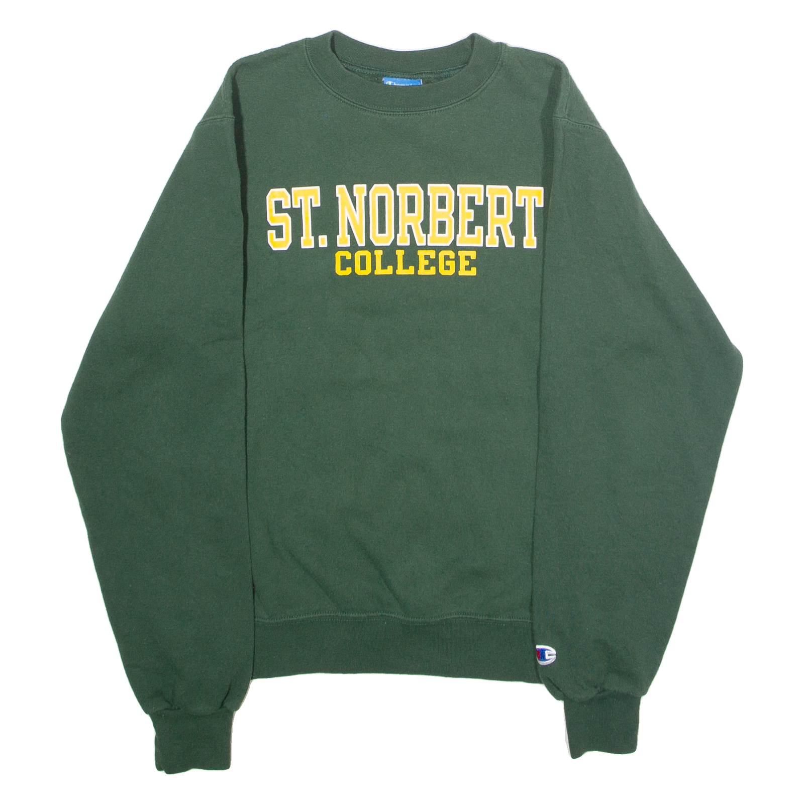 CHAMPION St Norbert College Mens Sweatshirt Green Crew Neck 90s USA XS