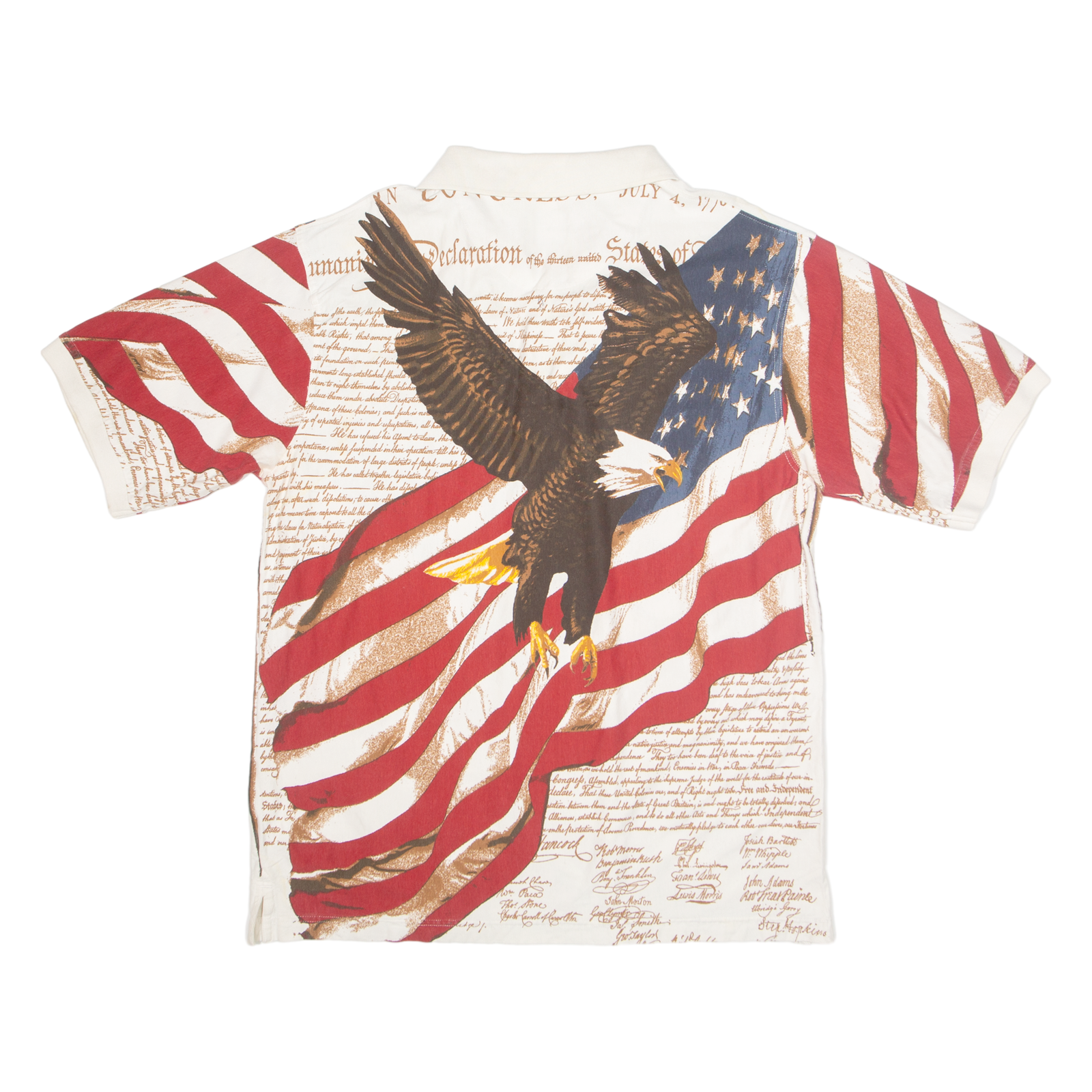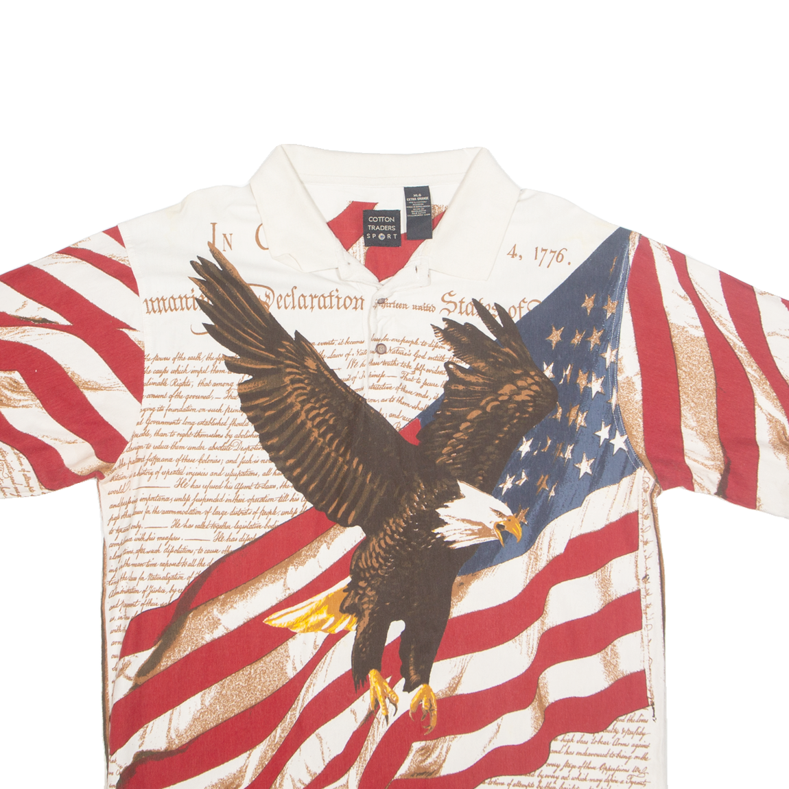 COTTON TRADERS USA Mens Polo Shirt Cream 90s Crazy Pattern XL