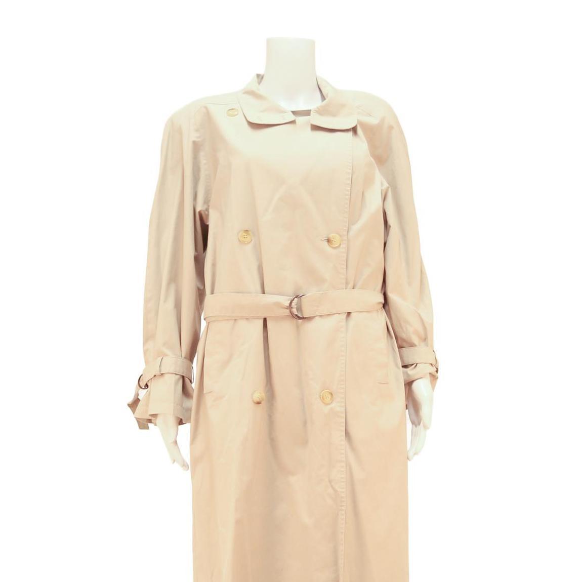 Womens Beige Classic Long Sleeve Button Closure Polyester Trench Jacket L