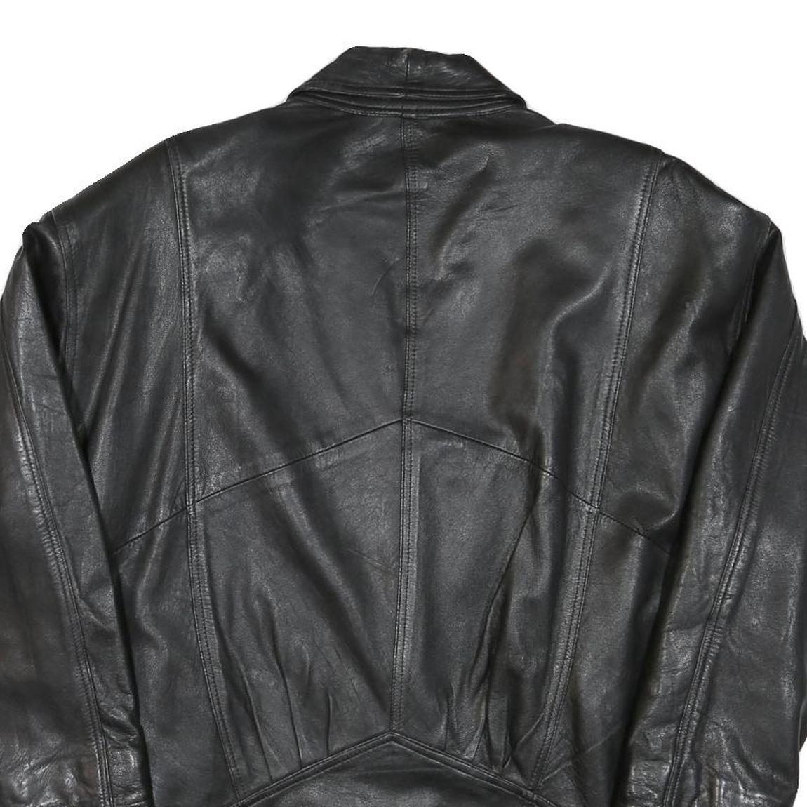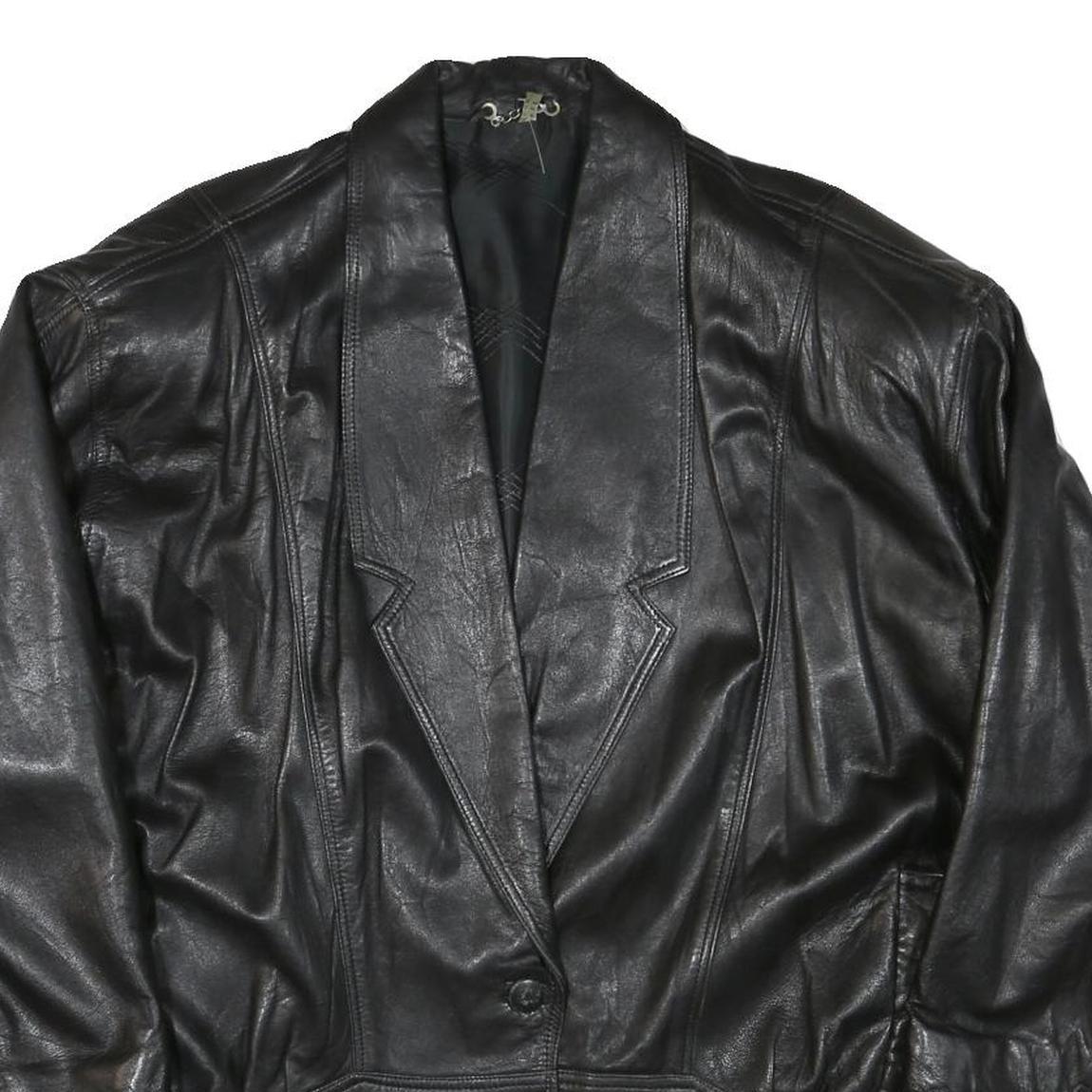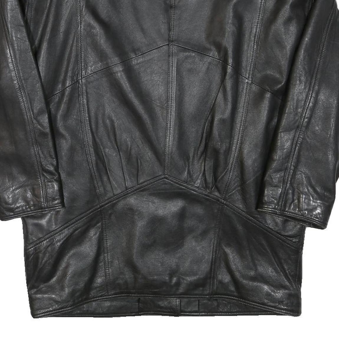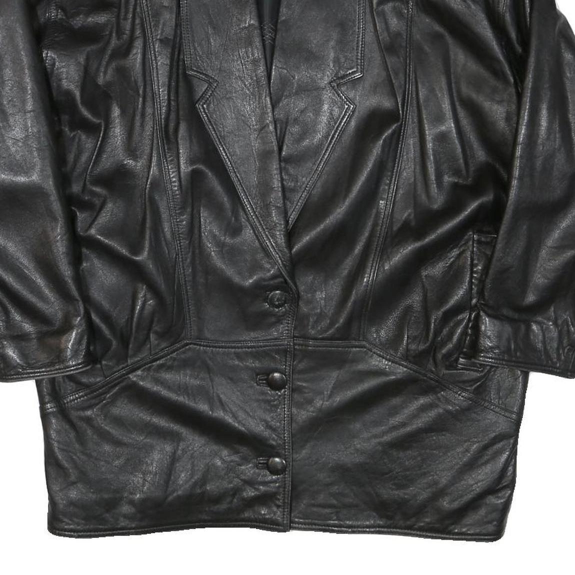 Womens Black Leather Button Jacket XL Woven Classic Oversized Stylish